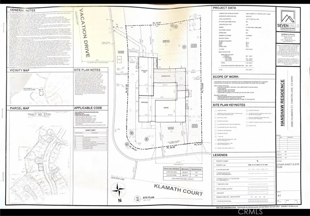 Located in the highly sought-after Canyon Lake Community, this corner cul-de-sac lot offers a rare opportunity to build your dream home. The property includes plans for a stunning ultra-modern two-story residence designed to capture panoramic lake views from the second floor and rooftop deck. The approved design features an ADU, 3-car garage, elevator(2-3 people), pool room, two bedrooms on the main level, and one bedroom on the lower level. Extensive preparation has already been completed to streamline the building process. The architectural plans have been approved by the POA, and the City has approved grading and SDP-SWQMP, which have been paid. The house design and structural review have also been approved. Sewer connection is available across the street on Vacation Dr, and EVMWD water meter has been approved and paid. Skip the long permitting process this property is ready for construction, allowing you to move forward with building in Canyon Lake. Grading will be completed for you so it is ready to build right away. This lot is steps away from Sierra Park. Canyon Lake is a 24-hour guard-gated community featuring a private 383-acre lake for boating, fishing, and water skiing. Some amenities include an 18-hole golf course, a pool, tennis and pickleball courts, an equestrian center, 18+ parks/beaches, a campground (Happy Camp), and dining options at the Lodge and Country Club.