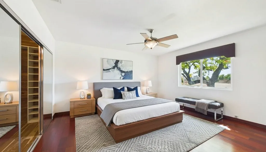 Beautifully fully remodeled single-level 3 bedroom, 2 1/2 bathroom home offers 2,713 sq ft of living space on a 7,949 sq ft corner lot with city views and exceptional indoor/outdoor living. Upon entering the home, you are welcomed by the spacious formal living and formal dining rooms, perfect for entertaining. The home also features a family room just off the kitchen, creating a comfortable and functional space for everyday living and gatherings. A separate entertainment room opens to the backyard through elegant French doors, providing a seamless transition to the outdoor space and pool area and spa. The gourmet kitchen has been thoughtfully updated with custom cabinetry, stone countertops, premium appliances, and a professional 6-burner stove with a convenient pasta arm faucet, making it ideal for cooking enthusiasts. Ample cabinetry provides generous storage throughout the kitchen. Enjoy the best of Southern California outdoor living in the backyard featuring a sparkling swimming pool and spa perfect for relaxing or hosting gatherings. Additional highlights include an attached 2 car garage with custom storage cabinets, wine cooler, and washer and dryer, plus a separate storage shed for added convenience. The home sits on a desirable corner lot, offering added privacy and curb appeal, all within a convenient single level layout. This exceptional move in ready property combines luxury, comfort, and breathtaking views ideal for both entertaining and everyday living.