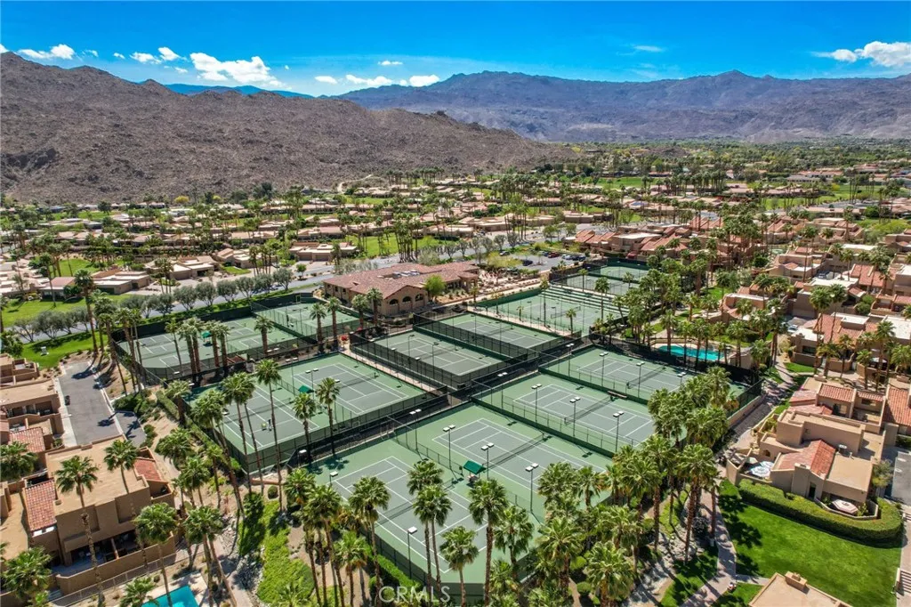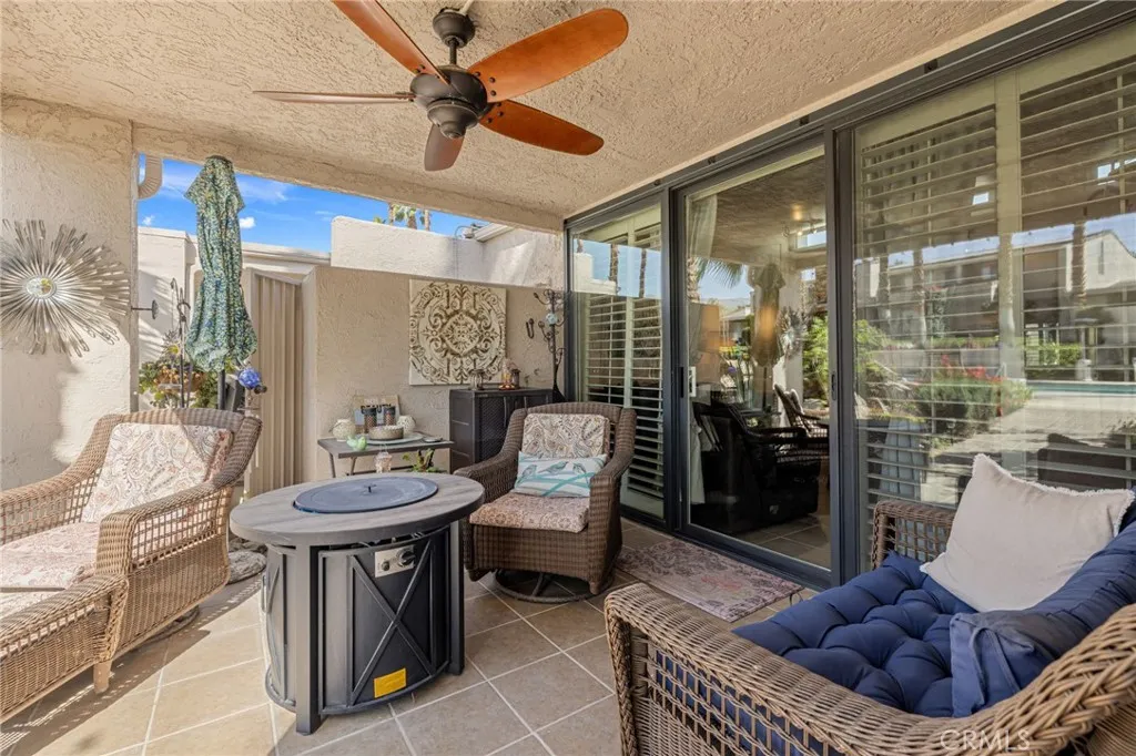 Beautifully situated behind the gates of the desirable Ironwood community in Palm Desert, this charming 2-bedroom, 2-bath condo offers the perfect blend of comfort, scenery, and resort-style living. Ideally positioned with a southwest-facing view overlooking the pool, this home captures stunning desert sunsets and creates the feeling of being on vacation every day. The open floor plan provides a bright and inviting living space, seamlessly connecting the living, dining, and kitchen areas. Just off the living room, a spacious patio is designed as a relaxing retreatperfect for BBQs, reading a good book, or unwinding with a glass of wine while enjoying views of the pool (just steps away) and the colorful evening sky. The primary bedroom features a sliding glass door that opens directly to the patio with pool views, creating a peaceful indoor-outdoor flow. The primary bathroom includes a walk-in jetted tub with shower head for added comfort and accessibility. The second bedroom offers its own private patio, providing a quiet space for guests or a home office. Additional highlights include an indoor laundry area with a new washer and dryer, a large two-car covered carport, and several recent upgrades including newer windows, newer water heater, a new tile roof, rain gutters, storage cabinets on the side patio, and leased solar. Located just minutes from the world-class dining and shopping of El Paseo, Ironwood residents have access to membership to the two beautiful golf courses (North Course & South Course), the racquet club featuring 9 tennis courts & 10 pickleball courts and