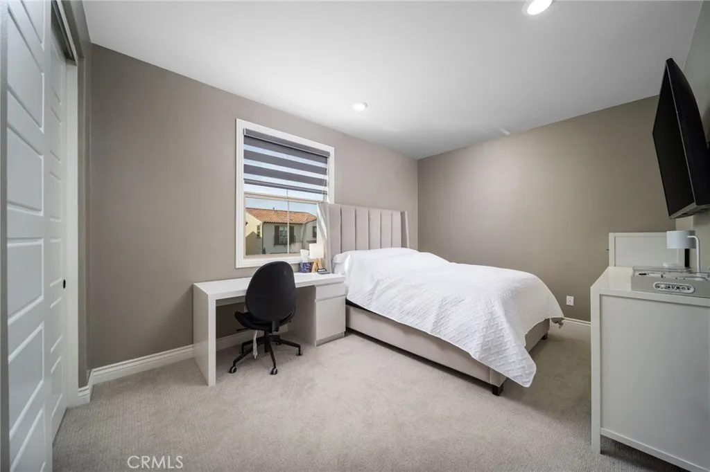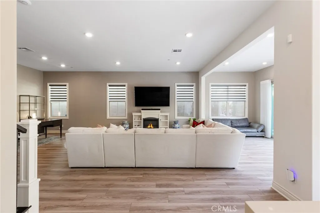 RARE opportunity to own a highly upgraded, move-in-ready residence situated on an extra-large premium lot in the highly desirable Village of Portola Springs. This immaculate home offers 4 spacious bedrooms, including a downstairs guest suite, 4 full bathrooms plus a powder room, a light-filled conservatory, and a large upstairs loft, ideal for flexible living. Designed for modern living and entertaining, the open-concept floor plan showcases a gourmet chefs kitchen appointed with KitchenAid appliances, a 6-burner cooktop and three ovens, cultured marble countertops, an oversized island, farmhouse sink, pendant lighting, and upgraded cabinetry with full-height tile backsplash. Luxury vinyl plank flooring enhances the main living areas, while expansive panoramic sliding doors create seamless indoor-outdoor flow to the oversized designer backyard, perfect for entertaining and al fresco dining. The second level features plush upgraded carpeting, three generously sized bedrooms, a private loft, and an impressive primary suite complete with dual vanities, an oversized shower, soaking tub, and massive walk-in closet with custom built-in shelving and organizers. The laundry room is conveniently located upstairs. Additional highlights include custom staircase detailing, designer window treatments, recessed lighting throughout, fully paid-off solar panels (2kW system), and a 220V EV charger connection in the garage. Both the front and backyard are professionally custom-designed and landscaped. The front yard offers beautiful, inviting curb appeal, while the backyard serves as a true