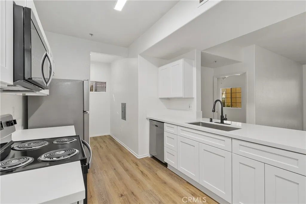 VA & FHA APPROVED! Welcome to this brilliantly updated lower-level end-unit condo that offers the perfect blend of comfort, convenience, and true turnkey living. Fresh paint, new flooring, and brand-new cabinetry create a bright, modern atmosphere throughout. The kitchen shines with new stainless - steel appliancesincluding oven, dishwasher, microwave, and fridge - plus quartz countertops. An in-unit laundry room with washer adds everyday ease so you can move right in with confidence. Enjoy two generously sized bedrooms, each featuring a large walk-in closet, along with two full bathrooms that provide comfort and privacy. The open concept layout enhances the homes inviting flow, ideal for both daily living and entertaining. Parking is effortless with your own dedicated carport and a private One Car Garageperfect for two personal vehicles. The location is unbeatable: the first building on the right as you enter the community, and unit 2412 is in the back of the building, plus just minutes from freeway access and a short drive to the vibrant shopping, dining, and entertainment and Wine Country of Murrieta and Temecula. The Villas at Madison Park is a gated community offering exceptional amenities, including a clubhouse, sparkling pool, spa, sauna, fully equipped gym, racquetball court, parks, assigned covered parking, and ample guest parking. The HOA is low and covers, water and sewer! We welcome your consideration of ownership, to own this newly renovated condo, with low taxes, in a highly desirable gated neighborhood, and remember your home happiness is just a call away!