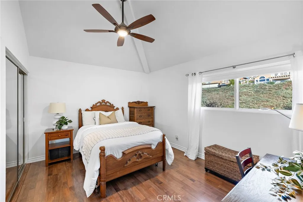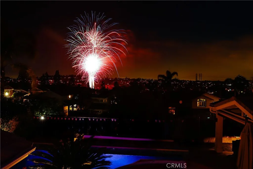 Experience elevated living and exceptional entertaining in this beautifully upgraded home on a quiet single-loaded cul-de-sac in the prestigious guard-gated Canyon Crest Estates of Mission Viejo. Enjoy breathtaking city lights views and front-row views of Mission Viejos Independence Day fireworks, all just moments from the clubhouse and resort-style amenities including pools, spa, sauna, tennis, pickleball, fitness center, playgrounds, BBQ and picnic areas, with 24-hour guard-gated security and roving patrol. Designed with quality and comfort in mind, the home showcases a remodeled chefs kitchen featuring premium Thermador appliances including a double convection oven, five-burner gas cooktop and dishwasher, complemented by under-cabinet LED lighting and Hunter Douglas electric shades. Additional highlights include dual and triple-pane Milgard windows and doors, in-wall JBL surround sound, and zoned HVAC with separate upstairs and downstairs thermostats and three remote controls. All three bathrooms have been stylishly remodeled with updated fixtures and finishes. The spacious primary suite offers remote-controlled Hunter Douglas shades and access to a private deck finished with a durable waterproofing system. The backyard is a true private resort, featuring a PebbleTec saltwater pool and spa with therapeutic jets, Pentair heating system and variable speed pump. The outdoor kitchen is fully equipped with a 32 Bull BBQ with rotisserie, griddle, dual burners, refrigerator, and sink with hot and cold water. Multiple covered entertaining areas include radiant heaters, a firepla