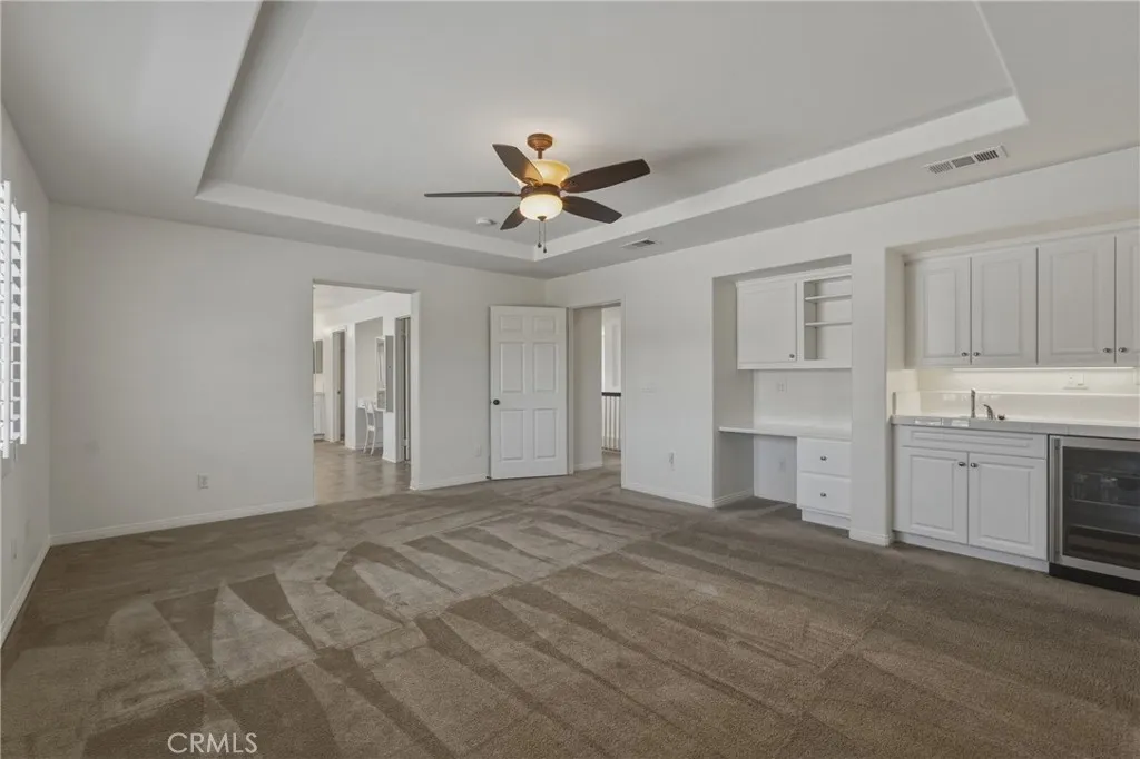 ENTERTAINERS DREAM IN MENIFEE! Welcome to this exceptional cul-de-sac residence offering approximately 3,993 sq ft of beautifully designed living space, featuring 5 bedrooms and 4 bathrooms. From the moment you step inside, a grand entry with soaring ceilings and abundant natural light creates an impressive and inviting first impression. The main level showcases elegant formal living and dining areas, perfectly complemented by a butlers pantry with a wine fridge that seamlessly connects to the kitchenideal for hosting unforgettable gatherings. The open-concept kitchen flows effortlessly into the spacious family room with a cozy fireplace, creating the perfect setting for both everyday living and entertaining. Downstairs also includes a private bedroom, a versatile office (or optional 5th bedroom), a full bathroom with shower, a dedicated laundry room, and direct garage access for added convenience. Upstairs, retreat to the luxurious primary suite featuring its own fireplace, built-in desk, and mini fridgeyour own private sanctuary. The spa-like primary bathroom offers a separate shower and expansive walk-in closets. Additional bedrooms include one with an en-suite bathroom and others thoughtfully positioned near a full bath, along with a generously sized loft perfect for a media room, playroom, or additional living space. A central vacuum system adds to the homes comfort and convenience. Step outside to your private backyard oasis, designed for year-round enjoyment. Enjoy a built-in BBQ island, covered patio with ceiling fans, a cozy fire pit, and lush grass areas perfect f