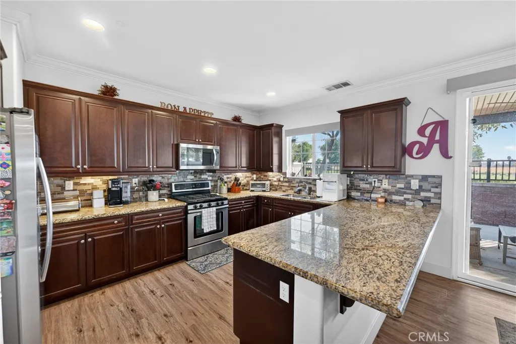 Beautiful move-in ready single-family home located in the highly desirable Preserve community, within an award-winning school district. This spacious residence offers 4 bedrooms and 3 bathrooms, including a convenient downstairs bedroom and full bathideal for guests or multi-generational living. The inviting living room features an updated fireplace, surround sound, built-in speakers, and automatic blinds. The kitchen is perfect for entertaining with granite countertops, wood cabinetry, stainless steel appliances, and a large bar-top island, plus direct access to the attached two-car garage for added convenience. Upstairs offers three additional bedrooms, a versatile loft, and a dedicated laundry room. The primary suite features crown molding, a spacious walk-in closet, dual sinks, and a separate tub and shower, along with peaceful park views. Step outside to a covered patio and a private, serene backyard with no rear neighborsjust a quiet walking trail and greenbelt behind you. Additional highlights include PAID-OFF solar for energy efficiency. Residents enjoy amenities including a pool, parks, and scenic walking trails, all just minutes from new schools and recently developed shopping centers. This is a must see!