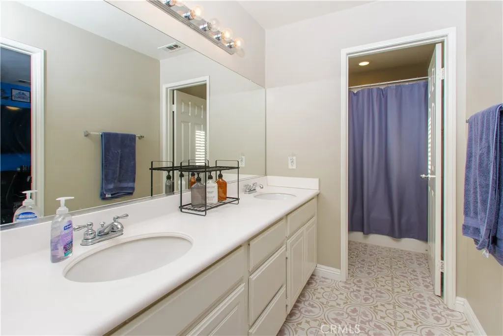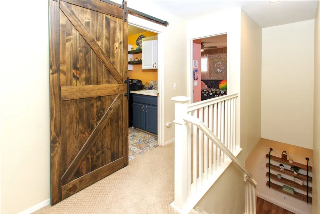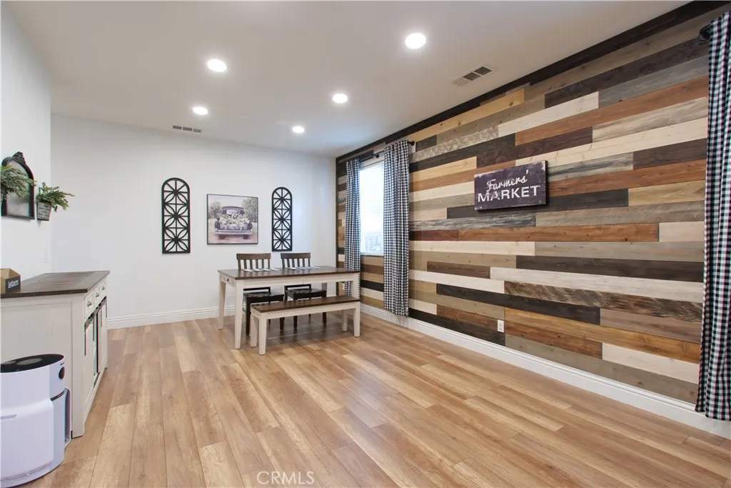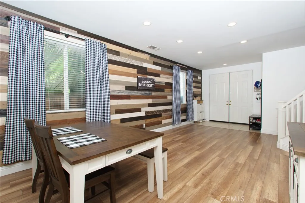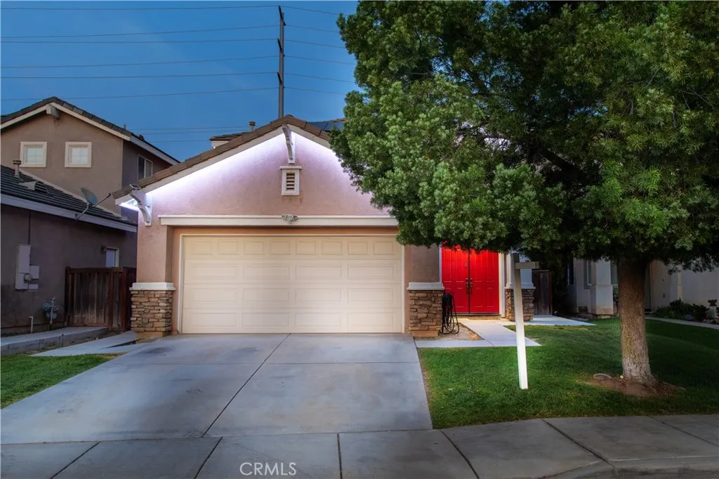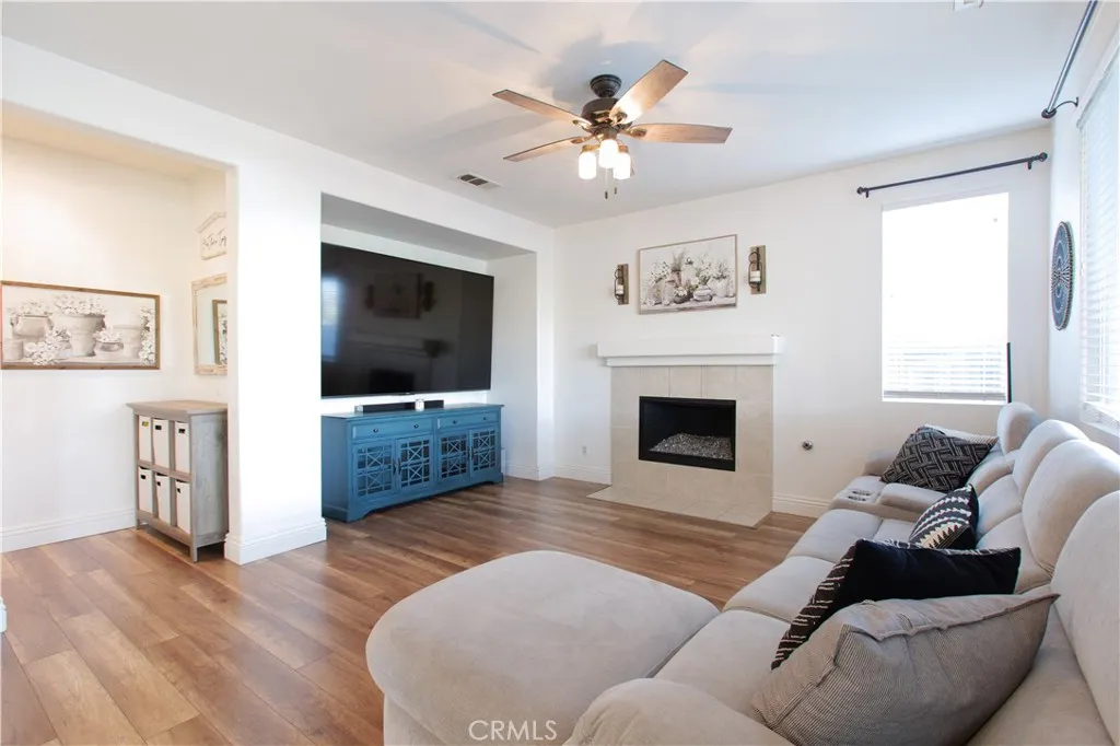 Welcome to this beautiful, turn-key, move-in-ready home with LOW TAXES, NO HOA, and ENERGY EFFICIENCY in a great neighborhood. This home shows true pride of ownership with upgrades throughout. The inviting entry showcases a custom shiplap accent wall, and the floor plan offers a full bedroom and full bathroom downstairs, ideal for guests, an office, or flexible space. The gourmet kitchen features a beautiful 6 ft island with pendant lighting, quartz countertops, a backsplash, and stainless steel appliances, all seamlessly opening up to a spacious family room with an upgraded fireplace. A new sliding door leads to a low-maintenance backyard with no rear neighbors, featuring an alumawood covered patio with 3 ceiling fans, bistro lighting, and a TV mount, perfect for everyday enjoyment. Additional features include a whole-house water-softening system, 17 solar panels for energy efficiency, a newer A/C system, a Nest thermostat, garage storage shelving, Govee lights, upgraded carpet, and a convenient upstairs laundry room. Conveniently located near freeway access, Menifee Town Center, shopping, dining, parks, walking trails, golf, and nearby hiking. This is the lifestyle youve been waiting for: affordable, low-maintenance, and ready for you to move in.