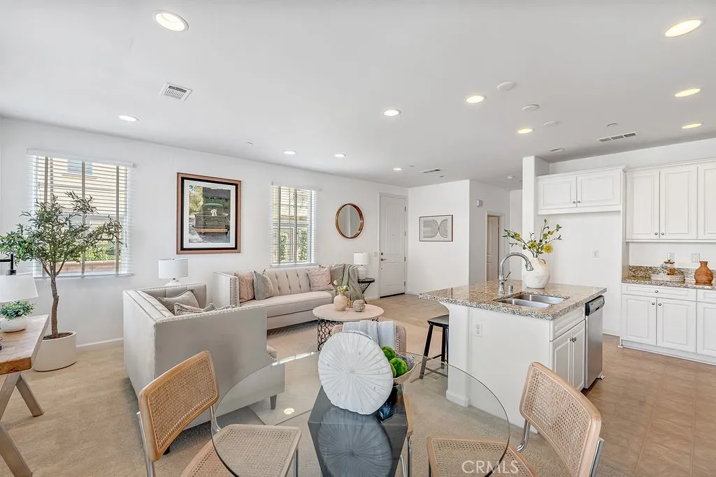Welcome to this upgraded corner unit located in the gated Parkside community in Ontario. With only one shared wall, this home offers enhanced privacy and a desirable east-facing orientation, providing abundant natural light from morning through midday. The open-concept floor plan features a spacious living room that flows seamlessly into the dining area and kitchen, ideal for everyday living and entertaining. A powder room is conveniently located on the first floor. Upstairs includes a versatile loft space, suitable for a home office, study, or optional fourth bedroom (per builder option). The primary suite offers a walk-in closet and an en-suite bathroom with a custom walk-in shower and dual vanities. Two additional bedrooms provide ample space for family or guests. A separate upstairs laundry room adds convenience. Additional features include direct access from a 2-car attached garage and a private backyard, offering a flexible outdoor space for relaxation or entertaining. Community amenities include a swimming pool, spa, clubhouse, outdoor fire pit, playground, dog park, and greenbelt areas. Conveniently located near Cucamonga-Guasti Regional Park, Ontario Mills, Victoria Gardens, Costco, 99 Ranch Market, major freeways, and Ontario International Airport. Low property tax rate approximately 1.1%.