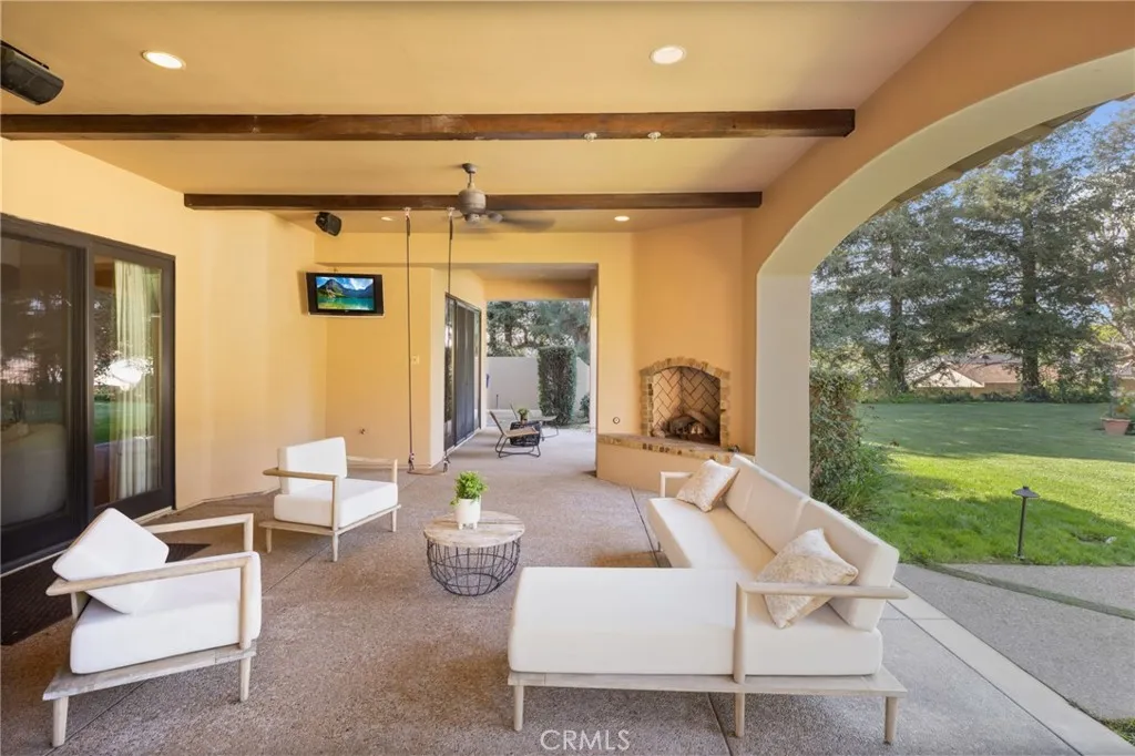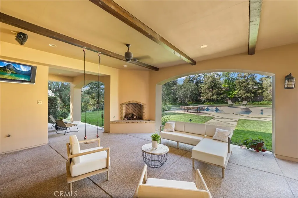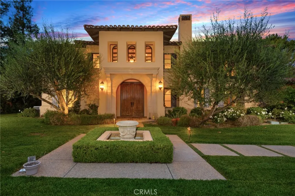 Framed by a breathtaking mountain backdrop, this extraordinary estate embodies timeless elegance and resort-style living. Custom built in 2003 by one of the owners of Mur-Sol Construction for himself with no expense spared. The 4,767 sq.ft residence sits on an expansive 47,955 sq.ft lot within an exclusive gated enclave of only three homes offering rare privacy, sophistication, and tranquility. A long impressive private driveway leads to the attached 5-car garage with additional parking. The homes classic Mediterranean architecture designed by Robert Tong creates a striking first impression. Beyond the grand double-door entry, a dramatic two-story foyer unfolds with a wrought iron staircase, a statement chandelier, custom sconces, travertine flooring, and finely crafted wood-framed windows. Elegant archways add architectural richness & seamless flow. The formal living room, anchored by a wood-burning fireplace, opens to the dining room and extends outside through French doors, creating a refined yet inviting setting for entertaining. At the heart of the home, the expansive great room showcases, soaring open-beam ceilings, rich hardwood floors, recessed lighting, built-in speakers, and a striking see-through fireplace flowing into the kitchen, game room, and outdoor areas. Designed for elevated entertaining, the game room features a custom wet bar w/ granite countertops, wine rack, nickel back sink, Scotsman refrigerator, ice maker, and integrated media. The gourmet kitchen offers a large center island, 6-burner cooktop with double ovens, double sinks, built-in microwave, pa