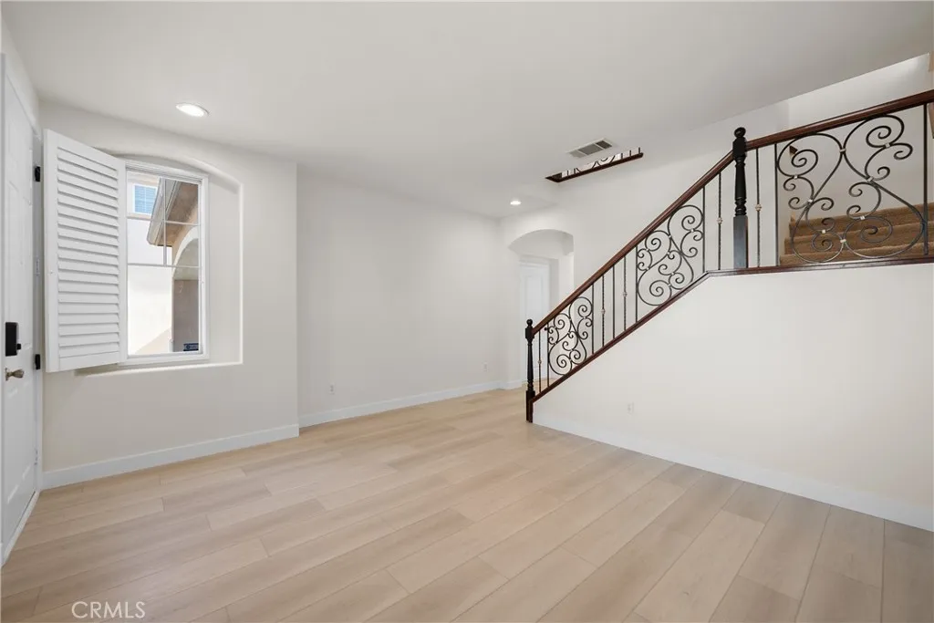 Impeccably maintained home located in a gated community within the highly sought-after Tesoro neighborhood. This residence features 3 bedrooms and 2.5 bathrooms, filled with abundant natural light and an inviting, open layout. Recent upgrades include laminate plank flooring throughout, fresh interior paint, and ceiling fans in all bedrooms. The family room offers a cozy fireplace, and the kitchen features white cabinetry, a center island, and opens seamlessly to the family roomideal for everyday living and entertaining. Upstairs, the primary suite enjoys scenic valley views and includes a dual-sink vanity, soaking tub, separate shower, and walk-in closet. Secondary bedrooms offer ample closet space. Additional features include a side-by-side 2-car garage and a private backyard with tree-lined views, perfect for relaxing or BBQs. Tesoro residents enjoy resort-style amenities including pools, spa, tennis and basketball courts, playgrounds, BBQ areas, and parks.