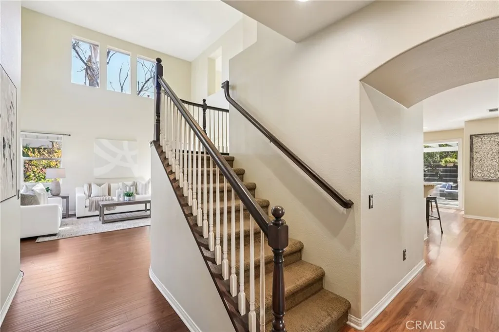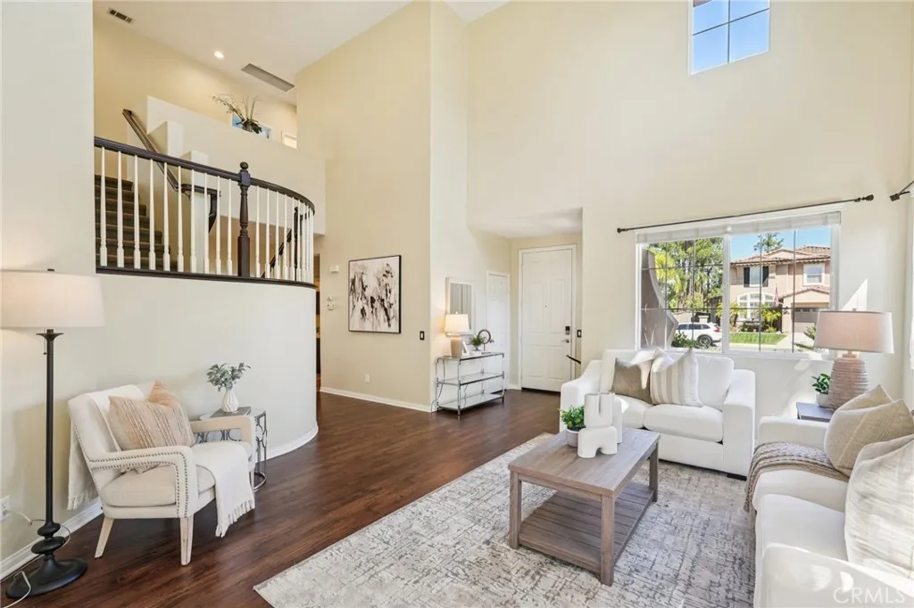 Welcome to this stunning two-story home located in the highly desirable Paseo del Sol community. Showcasing fantastic curb appeal, this home features an attached 3-car garage and leased solar panels for enhanced energy efficiency and long-term savings! Before stepping inside enjoy the front porch area great for relaxing. The spacious interior offers a thoughtfully designed floor plan highlighted by recessed lighting, a neutral paint scheme, and stylish laminate wood-look flooring throughout. The formal living room impresses with soaring two-story ceilings and an abundance of natural light, creating a bright and airy ambiance. Adjacent, the formal dining room is elevated by a modern industrial-style chandelier, this space is perfect for hosting! The open-concept great room seamlessly combines comfort and functionality, featuring a cozy fireplace in the family room, a charming breakfast nook, and a well-appointed kitchen that is equipped with granite countertops, a center island with breakfast bar seating, ample cabinet storage space, a pantry, and stainless steel appliances which include the refrigerator. Convenience meets flexibility with a main floor bedroom and full bathroom, ideal for guests or multi-generational living. There is also a dedicated laundry room. Upstairs, youll find a spacious bonus loft that can easily serve as a 5th bedroom, home office, or media room, along with three additional bedrooms including the large primary suite with private spa-like ensuite bathroom featuring dual sinks, a soaking tub, a separate shower, and a large walk-in closet. A full hall