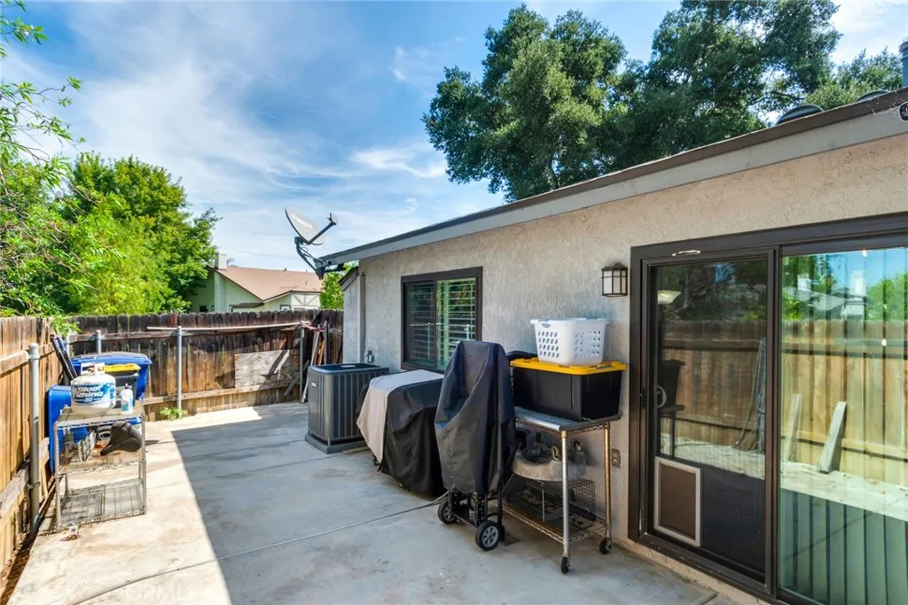 SINGLE STORY! Welcome to Barclay Square, a Beautiful Gated Community where this Single-Story Corner Lot in a Cul-De-Sac home has been Completely Upgraded and Lovingly Maintained. Mature Trees Provide Wonderful Shade in Both the Front and Back Yards, Creating a Private and Inviting Setting. The Porcelain Wood-Look Tile Throughout, a Remodeled Kitchen with Custom Cabinets, Granite Countertops and Stainless Steel Dishwasher, Oven/Cooktop, Microwave and Counter Depth Refrigerator are just a Few of the Upgrades. The Kitchen has an Eating Area with a Fandelier and Shutters and Opens to the Living Room. The Living Room is Cozy with a Gas Fireplace. The Hall Bathroom has a Vanity with Storage and a Tub/Shower Combo. Bedrooms 1 and 2 Feature Ceiling Fans, Shutters and Mirrored Closet Doors. The Primary Bedroom is Good Sized with the Primary Bathroom Attached that has a Custom Sized Shower, Dual Sinks, Vanity with an Abundance of Storage and Mirrored Closet Doors. The Sliding Door to the Back Patio Area has Great Afternoon Shade from Mature Trees and is Easy to Enjoy. The Air Conditioner is Daikin, there is a Nest Thermostat and the House has a Puragain Water Filtration System. The Garage has a LiftMaster Garage Door Opener and Built in Storage and Space for the Washer and Dryer. The HOA Maintains the Front Yard. This Home Truly Checks all the Boxes so Call and Schedule Your Private Showing Today!