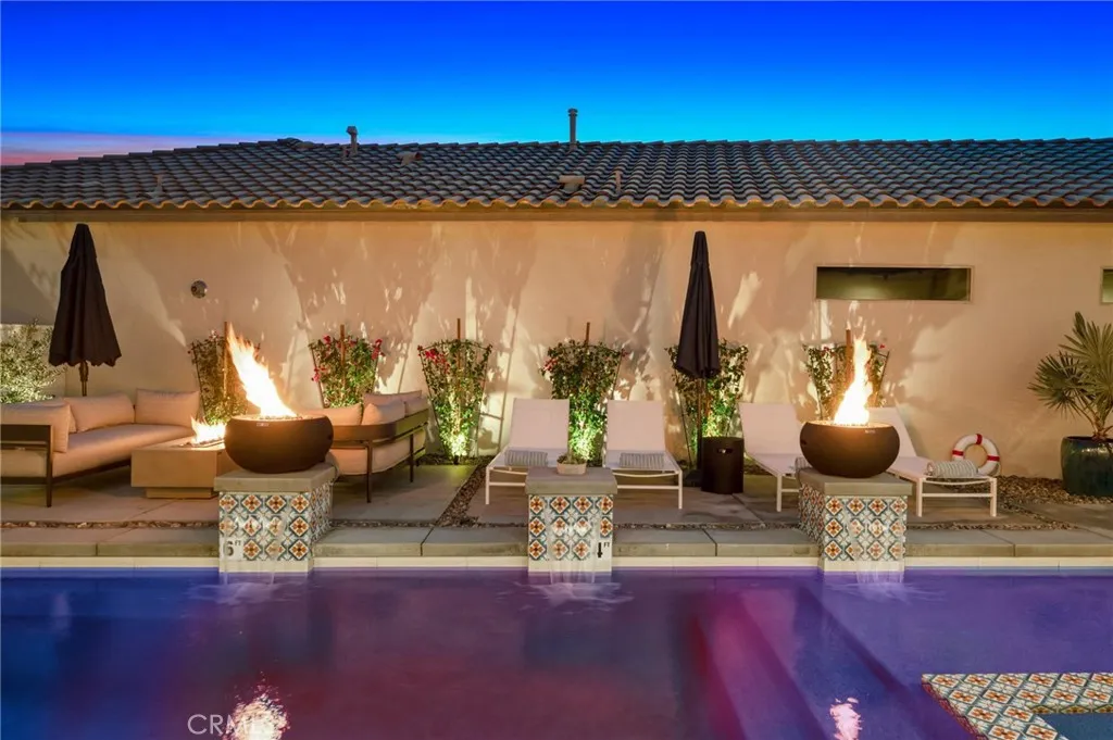 Located in the gated community of Signature at PGA WEST, this highly upgraded Topaz Collection home (built in 2022) offers a rare opportunity to own a fully furnished, professionally managed short-term rental. The property is currently operated by a third-party management company, with the ability for a new owner to assume the permit and continue operations. This single-story residence features 3 bedrooms, 2.5 bathrooms, and approximately 2,034 sq ft with an open-concept great room, dining area, and chefs kitchen. Upgrades include quartz countertops, hand-glazed tile backsplash, Fisher & Paykel appliances with dual dishwashers, professional range with hood, pot filler, Kohler farmhouse sink, wide plank vinyl flooring, smooth stucco walls, and designer finishes throughout. The outdoor space includes an extended patio with private pebble sheen pool and spa, built-in BBQ island, and fire feature. Additional features include fully paid solar, indoor/outdoor sound system, security system, enhanced insulation, and a 2-car garage with additional golf cart/storage space. Community amenities include clubhouse, pool/spa, fitness center, bocce courts, BBQ areas, 24-hour guard-gated security and landscaping.