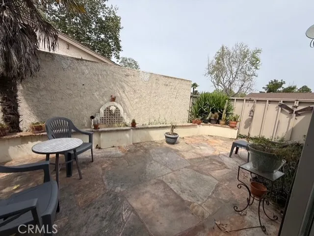 Bring your tools and imagination to this end unit 3 bdrm, 2 bath home. The corner location is ideally located and the large private patio area is a dream addition to this home. The possibilities are endless here for a complete remodel and updating of this home. There has been a newer roof replacement and the open vaulted ceiling makes this home seem so much larger. Wood burning fireplace for those cozy nights. Indoor laundry center with full size appliances included. Ideally located close to the beach area and shopping and the 101 Frwy.