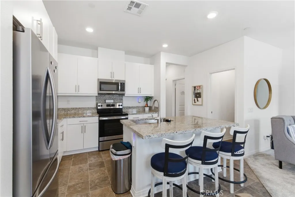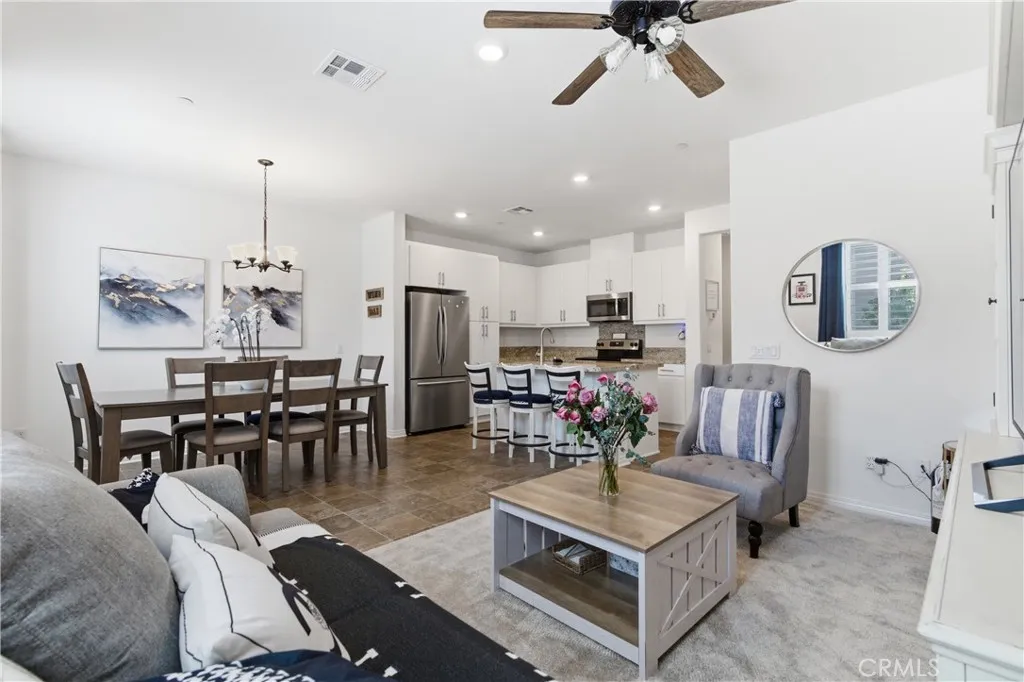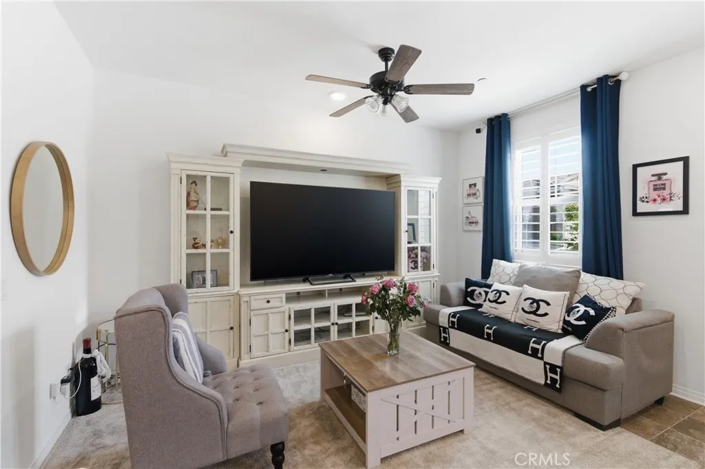 Tucked away in the peaceful Horizon Place community near the Murrieta border, this home welcomes you with a genuine sense of comfort and privacy. From the moment you step inside, the nine-foot ceilings, plantation shutters and grounded atmosphere really set the vibe. The heart of the home is an open-concept kitchen where granite countertops and a center island invite friends to gather, while the full tile backsplash and stainless steel appliances add a touch of refined character to every meal. Upstairs, you'll find three cozy bedrooms with lots of natural light, including a well defined primary suite with a large walk-in closet. A solar system and tankless water heater combine practicality with peace of mind, ensuring your home is as efficient as it is beautiful. Outside, the private patio courtyard provides a quiet place for morning coffee or a perfect space for evening grilling. The community amenities like the pool, spa, playground and firepit that encourage a vibrant social life just steps away. With direct access to a two-car garage and move-in ready status, this residence is more than just a house; it is a warm, thoughtfully designed space ready for its next chapter. Close to all major shopping, award winning schools, parks, freeway access, Inland Valley Hospital and so much more!