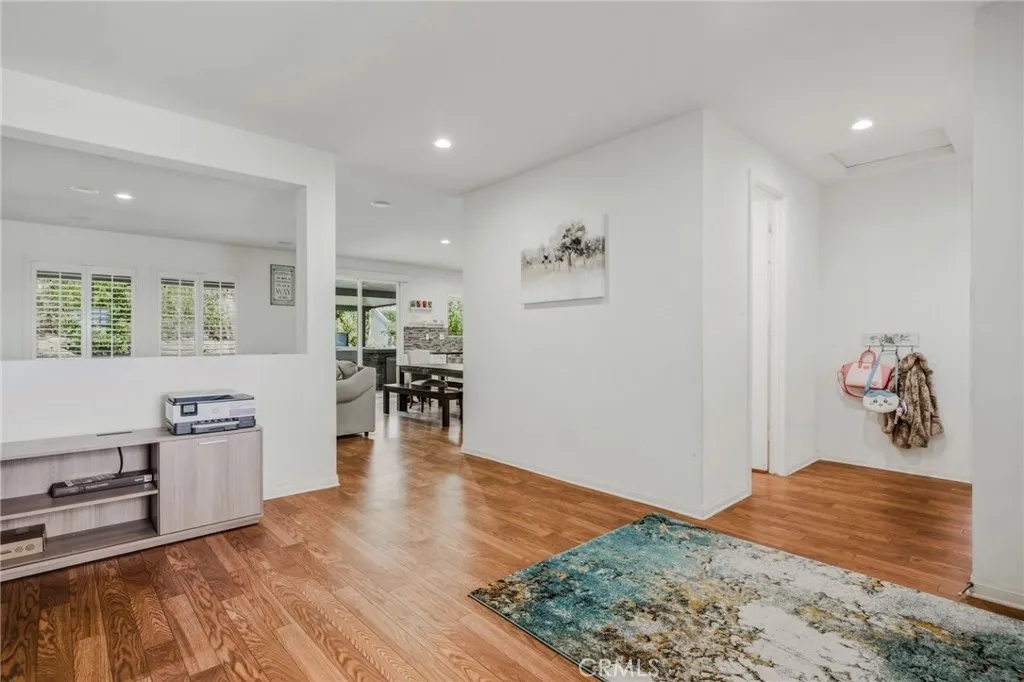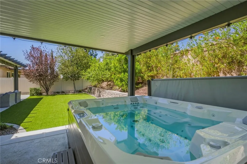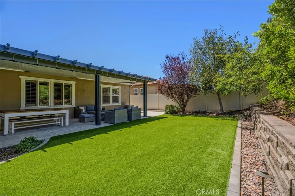 RARE single story opportunity with PAID solar and NO HOA in Crown Valley Village Single story homes don't come on the market often in this neighborhood. As soon as you arrive, you are greeted by a stunning fully landscaped front yard featuring low maintenance turf, a gorgeous shade tree and lighted steps leading to a welcoming courtyard. As you walk through the front door, you enter into a great room before moving into the living room which features a cozy fireplace and surround sound speakers, with windows overlooking the backyard. The open-concept layout flows seamlessly into the heart of the home. The kitchen is highlighted by white cabinetry, a tiled backsplash, and stainless steel Kitchenaid appliances. Retreat to the spacious primary suite, a true sanctuary featuring a walk-in closet and ensuite bathroom with a double vanity, soaking tub, and walk-in shower. The additional 3 bedrooms and 1 full bathroom are situated on the opposite side of the home, offering additional privacy and the perfect flexibility for a home office, gym, or guest rooms. Step outside to your private backyard oasisa low-maintenance space designed for year-round entertaining. Honeysuckle, star jasmine, fruit & citrus trees overlook the 784 sf. "L" shaped patio cover, giving shade to a gas firepit, a 7 person hot tub, and a built-in BBQ with mini fridge & double burner. Additionally, a new AC with heat pump and new tankless water heater add lasting value and efficiency. Elevate your living experience with soaring 9' ceilings and grand 8' doors, perfectly accented by elegant plantation shutters thr