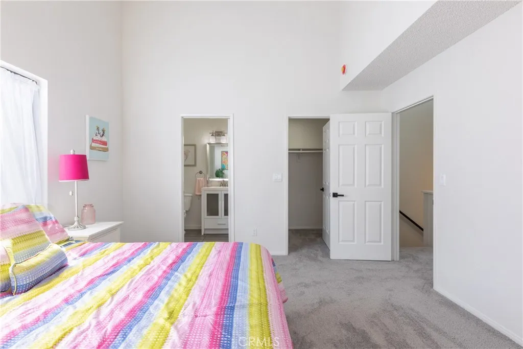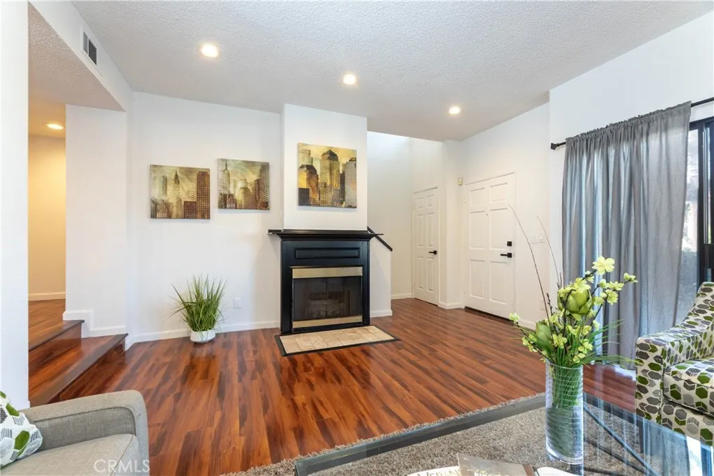 WELCOME HOME to this rare end-unit opportunity in the gated La Palma Estates community. This 3-story townhome offers 2 bedrooms, 2.5 baths, and 1,298 sq. ft., with direct street access and a well-balanced, functional layout. Fresh interior paint and thoughtful upgrades bring a crisp, modern energy throughout. The living room features a fireplace and opens to a front patio through a sliding glass door, creating an easy indoor-outdoor connection. Just a couple steps up, the dining area flows into an updated kitchen with granite countertops, stainless steel appliances, a wine fridge, and ample cabinetry. A convenient half bath completes the main level. Upstairs, both bedrooms are ensuite with vaulted ceilings and generous closet space, offering comfort and privacy. The lower level provides direct access to the oversized 2-car garage along with a spacious laundry room. Additional features include central air and heat, recessed lighting, updated bathrooms, new fixtures and hardware. Residents of La Palma Estates enjoy access to a pool, spa, clubhouse, and recreation area. Just minutes from shopping and dining, with easy access to the 405, 105, and 110 freeways, this turnkey property is move-in ready. Submit ALL Offers!