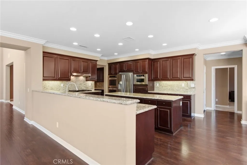 Welcome to this beautifully maintained home in the highly sought-after Wolf Creek community of South Temecula, proudly offered by the original owner where pride of ownership is evident from the moment you arrive. Step inside to find stunning wood flooring & soaring ceilings that create a warm and inviting atmosphere. The thoughtfully designed floor plan features a spacious kitchen with granite countertops, stainless steel appliances, double ovens, a generous eating area and seamless flow into the family room complete with a cozy fireplace and ceiling fan perfect for everyday living and entertaining. At the front of the home, youll find a formal living room, along with a separate dining room connected to the kitchen through a convenient butlers pantry and an additional walk-in pantry, offering ample storage and functionality. The main level includes a private bedroom with its own en-suite bathroom, ideal for guests or multi-generational living, as well as a separate half bath for added convenience. Upstairs, youll find 2 additional bathrooms & five bedrooms, including two that share a charming balcony perfect for enjoying morning coffee while taking in scenic views, including the Temecula hot air balloons. The oversized primary suite offers a true retreat with dual closets, separate tub and shower, and dual sinks. A well-appointed laundry room with sink and cabinet space is also located upstairs. Throughout the home, youll appreciate quality upgrades including plantation shutters, crown molding, upgraded baseboards and plush carpeting with upgraded padding, all contributing