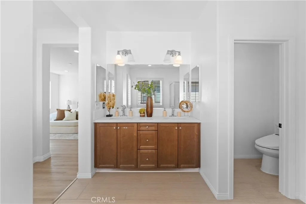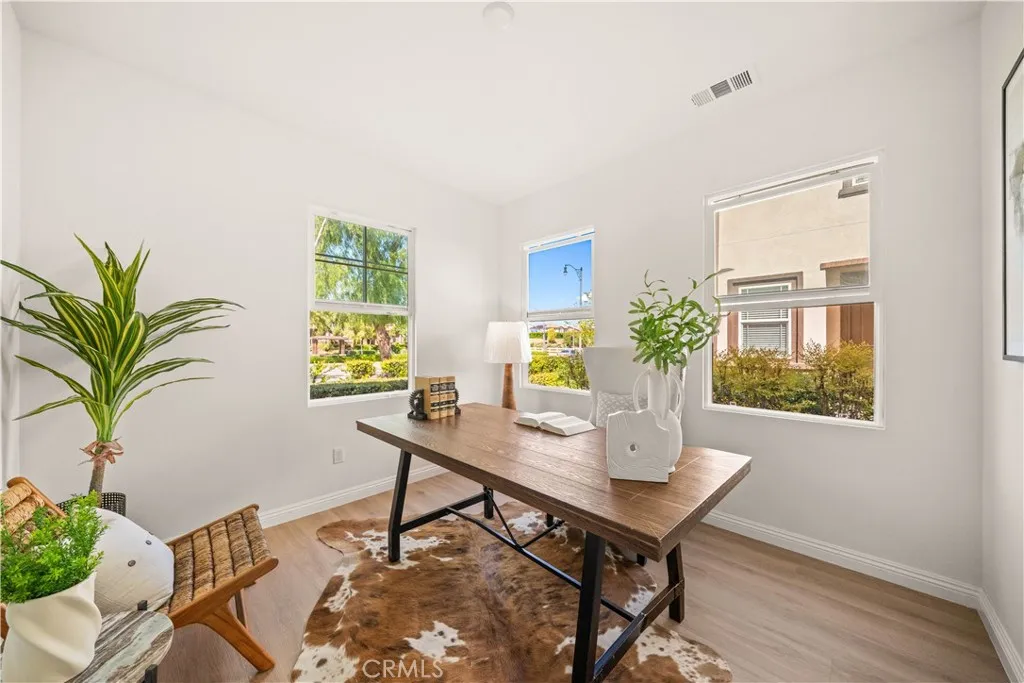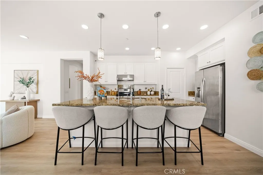 Beautiful two-story home located in the highly desirable College Park community of Chino. This spacious home features 4 bedrooms and 3 bathrooms, including one bedroom and one full bathroom on the main level, ideal for guests or multi-generational living. There is also an optional room on the first floor that can be converted into a fifth bedroom. Fresh interior paint and newly installed waterproof flooring give the home a modern, move-in ready feel. The open-concept kitchen features granite countertops, ample cabinetry, and a walk-in pantry. The bright dining area flows seamlessly into the living room, creating a comfortable and inviting space. Upstairs, the primary suite offers dual sinks, a soaking tub, separate shower, and a spacious walk-in closet. A dedicated laundry room with additional storage adds convenience. The backyard features vinyl fencing, a BBQ station, and beautifully maintained rose bushes, perfect for relaxing or entertaining. Community amenities include pools, spa, fitness center, parks, BBQ areas, and recreation spaces. Walking distance to Ayala Park and Chaffey College, offering great access to outdoor activities and a vibrant college atmosphere. Conveniently located near schools, shopping, dining, and with easy access to the 71, 91, and 60 freeways. A must-see!