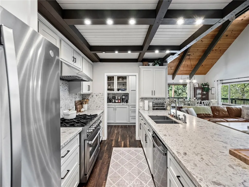 Welcome to beautiful Wrightwood, a charming mountain town nestled in the eastern San Gabriel Mountains. This spacious 4-bedroom, 2-bath home offers an impressive 3,222 sq. ft. of comfortable living, perfectly blending tranquility with convenience. Ideally located just moments from the country club and local amenities, only a 510 minute drive to Mountain High Ski Resort, and just 10 minutes from the village, this home offers the perfect balance of peaceful mountain living and easy access to everything Wrightwood has to offer. Beautifully updated throughout, this home is truly turnkey and ready for you to move right in. Recent upgrades completed within the last four years include all new dual-pane windows, a brand-new septic system with certification, new heater, tankless water heater, water softener, reverse osmosis system, and a new electrical panel. The property also features a generator bypass for added peace of mind. Inside, you'll find waterproof laminate flooring throughout, complemented by gorgeous brand-new cabinetry, granite countertops, and a stylish backsplash that brings a modern, elegant touch to the home. Outdoor improvements include reinforced and freshly painted decks, along with convenient RV parking. From its inviting living spaces to its extensive upgrades, every detail has been thoughtfully designed for comfort, efficiency, and long-term value. Whether you're looking for a peaceful full-time residence or a relaxing mountain retreat, this exceptional property offers the perfect place to call home.