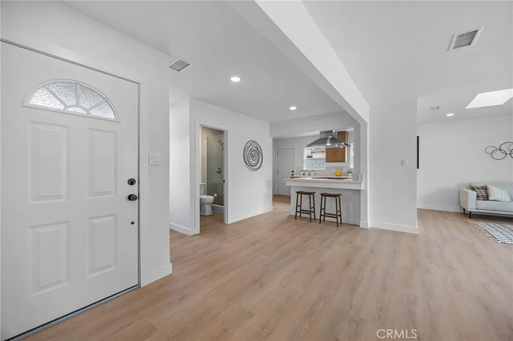Step into this stunning fully remodeled 3-bedroom, 2-bath home, thoughtfully redesigned to blend modern style with everyday comfort. Every detail has been carefully curated, offering a true turnkey living experience. Step inside to a bright and open layout featuring new flooring, fresh interior and exterior paint, updated windows and doors, and recessed lighting that enhances the homes inviting atmosphere. The stunning kitchen has been fully redesigned with new cabinetry, quartz countertops with matching backsplash, and sleek stainless steel appliances creating the perfect space for cooking, entertaining, and everyday living. Both bathrooms have been tastefully upgraded with contemporary finishes, offering a clean and modern feel. Major improvements include updated plumbing, new systems, and extensive interior and exterior enhancements, providing peace of mind for years to come. The exterior has been refreshed with new landscaping and low-maintenance grounds, ideal for outdoor enjoyment. An attached garage with upgrades adds convenience and functionality. Located in a desirable Anaheim neighborhood near shopping, dining, and major freeways, this home offers the perfect blend of style, comfort, and location. A true turnkey opportunity from major systems to designer finishes, everything has been done for you.