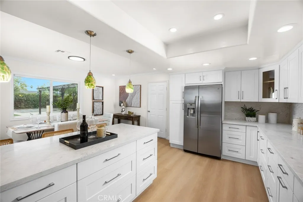Nestled at the end of a quiet cul-de-sac in a desirable Arcadia neighborhood and within the highly regarded Arcadia Unified School District, this south-facing home offers approximately 1,600 sq ft of recorded living space with 3 bedrooms (all south-facing) and 3 bathrooms. The functional layout provides potential for approximately 1,800 sq ft of living space through the conversion of the garage into an additional room, ideal for a guest suite or extended family use. The interior welcomes you with a well-designed entryway, creating a pleasant first impression. The staircase has been reconfigured with gentler steps for improved comfort and accessibility. The home has been extensively renovated throughout, including freshly painted interior walls, all-new recessed lighting, ceiling fixtures, and exterior wall lights. Brand-new windows invite abundant natural light, while new wood flooring adds warmth and a modern touch. All bathrooms have been completely remodeled with updated finishes. The exterior has also undergone a full transformation, featuring refreshed colors, materials, and design details that enhance the home's curb appeal. The property also offers ample parking, with a driveway featuring a newly added carport that accommodates two vehicles. Significant outdoor improvements include the removal and replacement of uneven concrete and asphalt with newly poured concrete for a clean and cohesive look. The landscaping has been fully refreshed with new lawn, shrubs, and flowers. The backyard features a covered patio. Combining modern upgrades, flexible living space, and att
