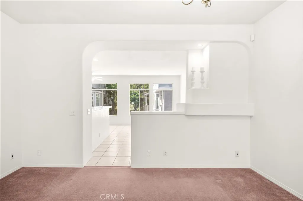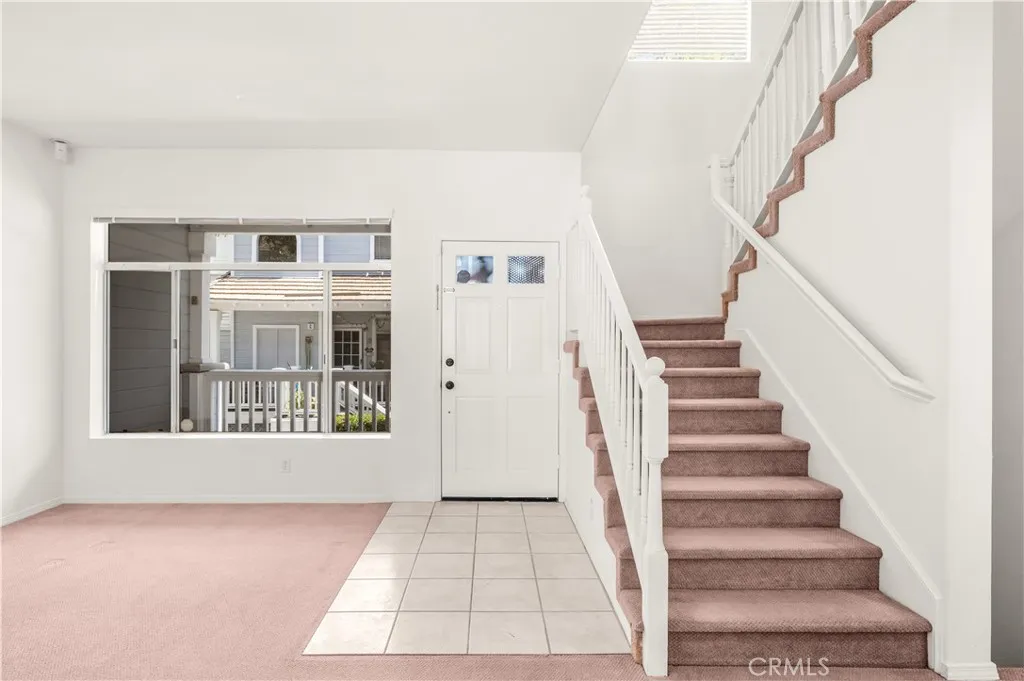 Welcome home to this spacious 3 level townhouse style condo located in the gated Huntington Condominiums community in Orange CA. From the moment you walk through the front door you'll feel right at home. The living space is open and bright with tile flooring and plush carpet throughout. The main level flows right into an open concept kitchen and dining area through an arched doorway. The kitchen features light wood cabinetry, a kitchen island with tile countertops, gas range, dishwasher and recessed lighting with tons of cabinet storage. Step out to your own private covered porch overlooking the community grounds perfect for morning coffee or just relaxing after a long day. Upstairs the skylit hallway leads you to spacious bedrooms including a primary suite that really stands out. It has its own fireplace, a spa like bathroom with a soaking tub and a generous walk in closet with plenty of built in shelving and storage throughout. The community has a pool, spa and tree lined walkways that make it feel like a resort.
