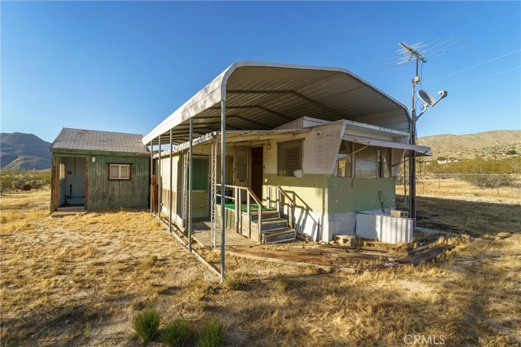 Discover Shelter Valley, nestled in the high desert foothills near Julian, San Diego County. This inviting mini-ranch spans five fenced and gated acres, thoughtfully arranged into two 2.5-acre parcels, each with its own well, power, and address. The main home welcomes you with a bright, airy feeling, featuring two bedrooms and two bathrooms. Sunlight flows through every window, painting the mountains in golden hues and lifting your spirits from sunrise to sunset. There is ample room to build your dream garage, or you can take advantage of the three versatile cargo containers already on site. One 40-foot container is powered and ready for your next workshop project, while the other two are joined by a shaded breezeway, perfect for open-air parking or storage. On the second parcel, a vintage trailer home at 721 Wells Fargo Trail invites you to step back in time, complete with classic wood paneling, louvered windows, and a playful pink motif in the kitchen and bath. Even the bedroom boasts a retro waterbed frame. This unique setup is ideal for a multi-generational homestead, a vacation getaway, or a source of rental income. This Mediterranean microclimate is absolutely perfect for so many different lifestyles: from the horseman or woman and livestock keeper to the winemaker, olive and lavender grower, vintage car collector, and snowbird alike. Come tour right away because chances are, this is your niche! Ready-made and waiting just for you.