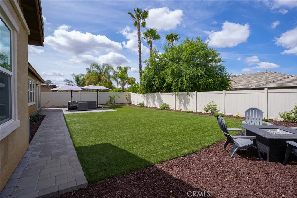 Step into this beautifully and completely remodeled home featuring an open floor plan that blends comfort and style. With 4 spacious bedrooms, 2 upgraded and renovated bathrooms, and paid-off solar, this newly remodeled residence offers energy efficiency and modern living at its best. The expansive kitchen is a true chefs delight with new appliances including a 48" commercial grade free standing dual fuel 8 burner range and custom hood, complete with stunning quartz counters and large island, a walk-in pantry, and new extended cabinetry. The open family room and dining area has upgraded LVP throughout, create an inviting space for entertaining and everyday living. Outside, enjoy a pool-sized 9,583 sq. ft. backyard oasis with vinyl fencing, water-efficient EZ turf, and a paved patioperfect for kids, pets, and relaxing afternoons. Additional upgrades include 9-foot ceilings, a tankless water heater, new windows and blinds, and fresh paint and designer touches throughout. Located within walking distance of schools, parks, and tennis courts, this home sits in the desirable Hidden Hills community of Menifee. Experience the perfect mix of luxury, convenience, and charm in this exceptional property. Welcome Home.