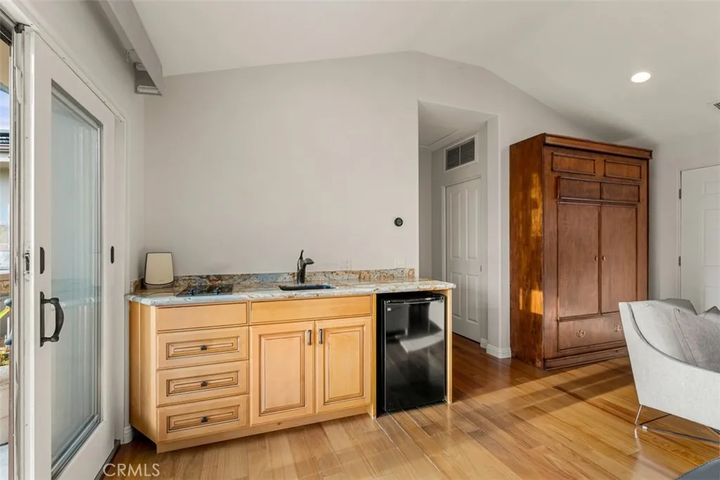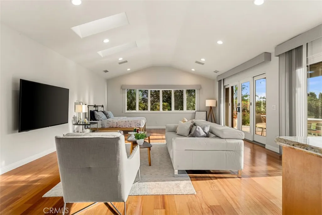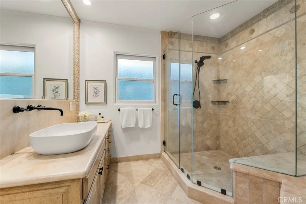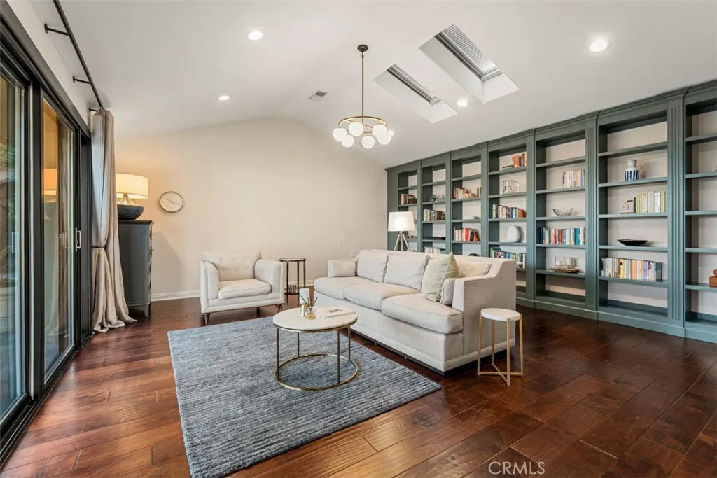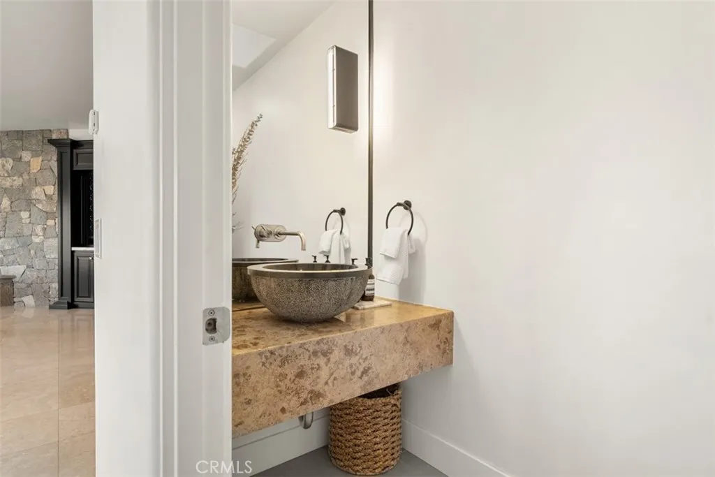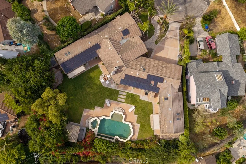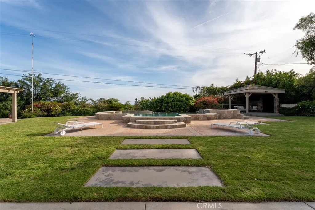 Welcome to a rare offering, a single level luxury estate located in Fullerton's most coveted enclave of custom built legacy homes. This residence blends refined architecture, premium finishes, & a layout designed for elegant living & upscale entertaining. Tucked at the corner of a private road cul-de-sac and exclusivity is apparent. The home features Andersen traditional French-style doors & windows, framing the home beautifully, inviting natural light, while maintaining exceptional energy efficiency. Natural travertine flooring extends throughout the main living areas, enhancing the homes organic palette & effortless indoor-outdoor flow. Bold, sophisticated & undeniably striking, the kitchen is a study of contrast & dimension. Dramatic black & white-veined marble paired w/ soft white & gray-veined quartz slab surfaces create a captivating visual interplay, while rich forest green cabinetry introduce depth & elegance. High grade Miele appliances reflect light with mirror like finish, adding a layer of modern refinement & performance-driven luxury, a kitchen that feels both artful and functional. Multiple seating and dining areas offers incredible flexibility for gathering, entertaining or enjoying everyday family moments. A seamless plaster wall finish present a refined, uninterrupted visual flow. The primary suite is truly its own retreat designed for calm comfort. The adjacent study is a standout feature, complete w/ custom shelving. Throughout the home, lighting is not merely functional, they are sculptural, whimsical, curated & thoughtfully placed acting as visual cues