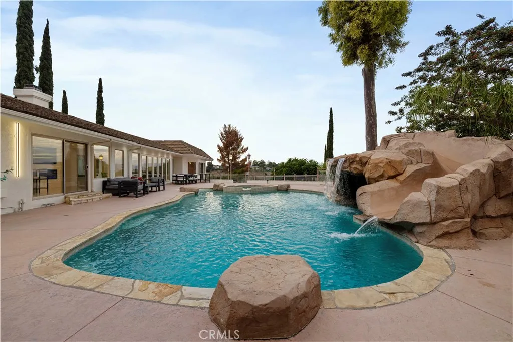 Amazing opportunity that you dont want to miss. A prior buyer didnt qualify, so this prestigious property is now priced for an immediate sale. This is your chance to take advantage of something truly special before someone else snaps it up. Introducing a truly exceptional property that perfectly blends privacy, sophistication, and high-quality craftsmanship. Nestled in a premier location, this homes beauty and exclusivity are simply breathtaking. From the moment you step inside, youll be greeted by soaring ceilings, high-end finishes, and light-filled open spaces designed for both intimate living and grand entertaining. The seamless indoor/outdoor flow makes it ideal for gatherings, while 5 spacious bedrooms and 3.5 bathrooms provide ample room for comfort and relaxation on nearly one acre of land. The beautifully updated kitchen is a chefs dream, flooded with natural light and equipped with top-of-the-line Thermador appliances, opening to a cozy family room with a fireplace. The primary suite offers a luxurious retreat with a romantic balcony, two expansive walk-in closets, and a spa-like bathroom. Additional highlights include a smart home surveillance system for enhanced security and abundant windows showcasing stunning views of the lush landscape. Step outside to your private resort featuring a sparkling pool with a waterfall and slide, a fully equipped outdoor kitchen and BBQ area, and a park-like backyard perfect for children or quiet moments. Uniquely, the property offers direct access to Corbin Canyon trails right from the backyarda rare convenience for nature lover