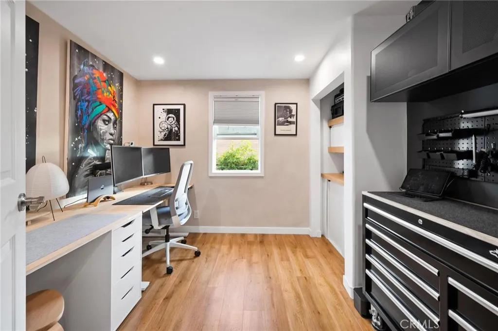 Stunning Craftsman bungalow blending classic charm with modern updates. Thoughtfully designed with an open flow between the living, dining, and kitchen areas, the home offers a comfortable yet refined living experience. The updated kitchen is highlighted by a center island and contemporary finishes. A detached garage has been converted into a versatile bonus space, well suited for a home office, gym, or guest use. Recessed lighting complements the main living areas. Prime location just minutes from Glendale shopping, dining, and nightlife, with convenient access to Northeast LA and nearby hiking trails.