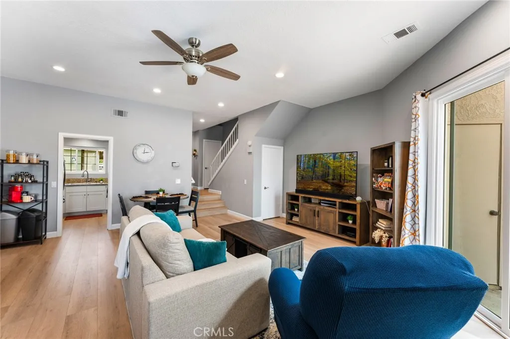 This spacious two-story condominium is nestled in the desirable Crestline community of Laguna Hills, known for its lush landscaping and tranquil setting. The popular floor plan features two private upstairs primary suites. The main level boasts a bright and open living and dining area with soaring ceilings, abundant natural light, and a cozy fireplace, with sliding doors leading to a brick patio perfect for entertaining, gardening, or relaxing outdoors. The updated kitchen shines with granite countertops, newer cabinetry, and a light, airy feel, while a convenient downstairs powder room is ideal for guests. Upstairs, a separate laundry room is centrally located between the two suites for added convenience. Recent upgrades throughout the home include newer laminate flooring, updated windows, remodeled bathrooms, an upgraded fireplace mantel, re-piping, and recessed lighting. Ideally located near the community pool and spa, and just minutes from shopping, schools, and major freeways, this home offers both comfort and conveniencemaking it a perfect place to call home.