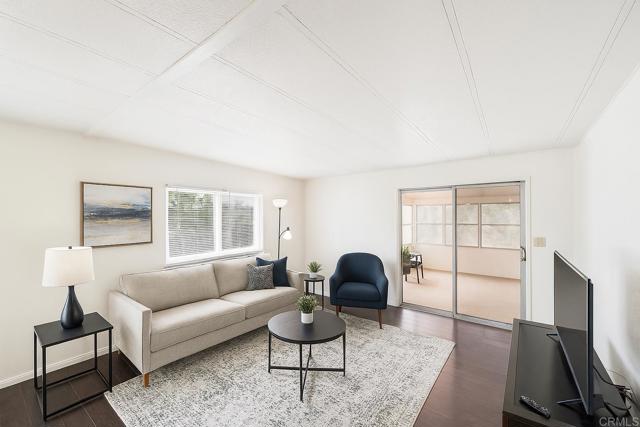 Priced reduced! Plus, seller will give concessions to buyer. Step into this distinctive single-story home, elegantly spread over 1540 s.f. of beautifully designed living space. This two-bedroom, two-bathroom home is presented with a warm collection of thoughtfully articulated spaces, each brimming with charm and character. Upon entry, you are greeted by an exquisite living and dining area flanked by an open kitchen. Each bathroom is a haven of relaxation equipped with bathtubs perfect for a soothing soak. The heart of this home is a versatile open-plan kitchen and cozy family room. Leading outwards, a lovely sun-drenched terrace invites you to savor your morning coffee or read your favorite book in the warm afternoon sun. For added convenience, there's also a laundry room at your disposal. Two generously-scaled bedrooms provide both comfort and style, accentuated by a sunroom that bathes the room in an abundance of natural light. This home exudes a welcoming environment of unparalleled comfort. See home improvements list done by the seller in the listing documents tab. Some interior and exterior photos have been virtually staged/enhanced. Space rent is $1061/mo.