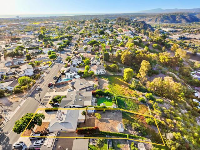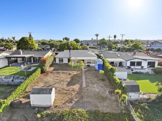 This single-story 1961 gem sits on the hilltop only three miles from Oceanside's bustling downtown, beach, and pier. Enjoy sand and surf, great restaurants, Sunset Market, Farmer's Market, and Artist Alley within a few minutes, and take a short stroll down the block to Buddy Todd Park. Watch the skydivers and their colorful parachutes descend as you relax and enjoy the astounding 180-degree view of the valley from your large backyard. You can also enjoy the view from the dining room and two bedrooms, all of which have a sliding glass door to the yard. Wood flooring adds authenticity and warmth to the living room, and the dining room ceiling is made of wooden beams. The spacious backyard has plenty of room for a potential pool, ADU, or both! With no homeowner's association, so no fees and restrictions. Use the enormous bonus room as a family room, gym, or game room...or you can easily convert it into a fourth bedroom with its own dedicated side entrance. Solar power, the ocean breeze, and electric car charger will help you save on utilities and gasoline, and getting around is so much easier with I-5 and Hwy 76 just around the corner. RV parking and enough driveway for four.