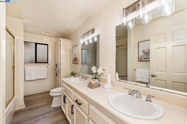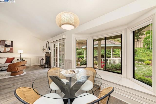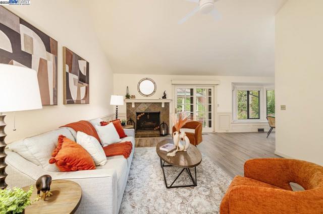 This spacious single-story home in the desirable Vintage Hills II neighborhood offers owned solar and fresh updates including new interior paint, flooring, and lighting. A welcoming front yard with blooming hydrangeas leads to a charming covered porch. Inside, the formal living room features vaulted ceilings and a fireplace, flowing into a dedicated dining area. The kitchen is filled with natural light from skylights and includes black appliances, a walk-in pantry, and a breakfast nook with a window seat. The adjacent family room offers vaulted ceilings, a second fireplace, and access to the backyard for seamless indoor-outdoor living. The primary suite includes backyard access, a walk-in closet, and a spacious bath with dual vanities and a large walk-in shower. Two additional bedrooms—one with en suite access to the hall bath—offer flexibility for guests or a home office. The backyard features award-winning roses, two gazebos (one wired for a spa), and raised garden beds. Three-car garage with built-ins. Low HOA with community pool. Convenient to parks, top-rated Pleasanton schools, downtown, ACE Train, and commuter access. Open House Fri, Oct 03 10-1p | Sat & Sun, Oct 04-05 1-4p.