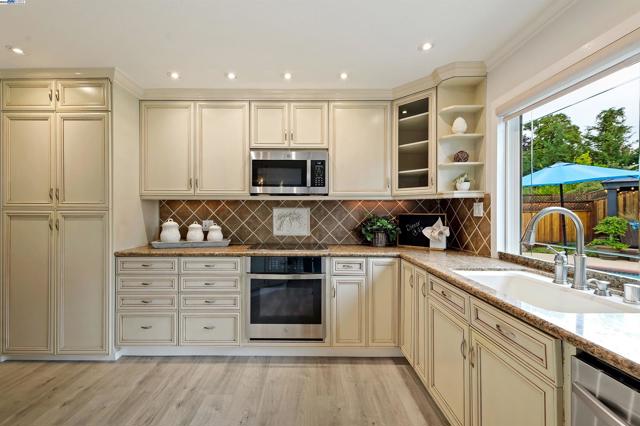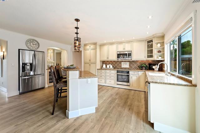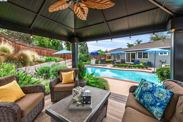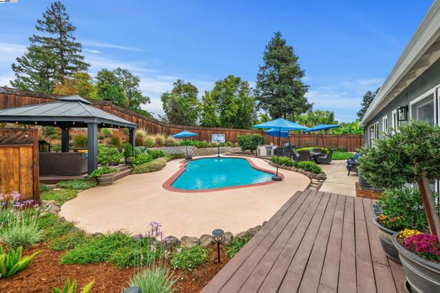 Pride of ownership shows in this sought after 3 bedroom, 2bath home in Livermore's desirable Shadowbrook neighborhood. Freshly painted on the exterior and 90 percent of the interior, new manufactured wood floors the Family/living room offers fireplace with surround custom cabinetry with leaded glass doors and shelves for personal display items. The kitchen offers an open floor plan to host a large table, island with barstool seating, custom bar/coffee station area, a sliding glass door to an "Oasis" of a backyard with multiple sitting areas, in ground pool, outdoor kitchen area, covered gazebo area, endless entertaining opportunities, new sod, side yard for possible bocce court, she/he/kids sheds, garden area-whatever your vision may be and an in ground pool. The 10,308 square foot lot makes this location one can do many things with longterm. Livermore Valley schools are nearby, plenty of shopping, eateries, Downtown Livermore, Livermore Wine Country, ACE train, Sycamore Grove Park and Alden Lane Nursery are all easy access from the Shadowbrook Neighborhood.