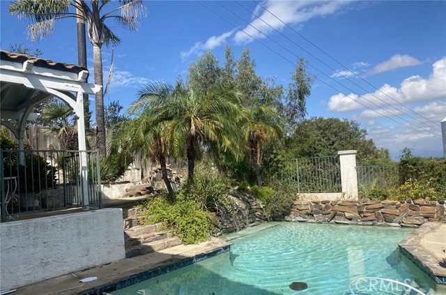 Canyon Living at its best. This home will give its owner the feel of living miles away from city life, yet only short drive to The Shoppes at Chino Hills, or the OC area of Brea. Freeway access to 60, 71, or 57 minutes away as well. This home offers 2 bedrooms downstairs with a shared full bath, large closets, one bedroom has direct access to the bathroom. Bath has separate tub and shower. Large entry into home is open to the formal living area with large window to rear yard. Turn to the right and down 2 steps where you will see out the slider that gives access to the pool/spa area with rock waterfall, multiple covered areas to entertain your guests. Kitchen has an abundance of storage, stainless appliances that include a 5-burner cooktop, side by side refrigerator, built in oven and microwave, dishwasher, trash compactor, at the kitchen sink is a view of the pool and distant mountains. The kitchen has seating at the large granite island as well as room for dining table. This area opens to a very large great room with fireplace, large windows to see the views. For those friends and family parties there is a large saloon style wet bar with plenty of seating, storage, bar fridge and opens to both the great room and formal dining area. Small hall gives access to a 1/2 bath conveniently located next to huge laundry room that has access to the yard and pool. Upstairs is the primary suite, walk-in closet, additional closet with sliding doors, separate tub/shower in bath. The primary has views of the mountains from the large windows as well as a private balcony with views of the Hills, fireplace with marble hearth and surround. Secondary bedroom has attached bath with standup shower, walk in closet, private balcony, large picture windows with views of mountains. Large oak trees give plenty of shade, 4 car garage for toys or set up a workshop. This is a house you can make your home.
