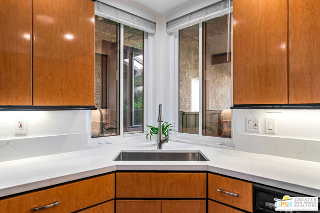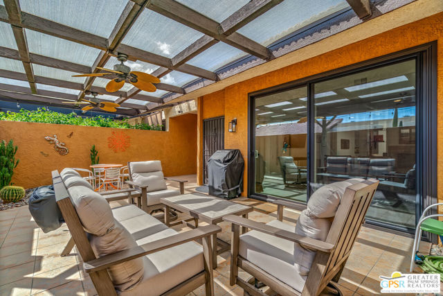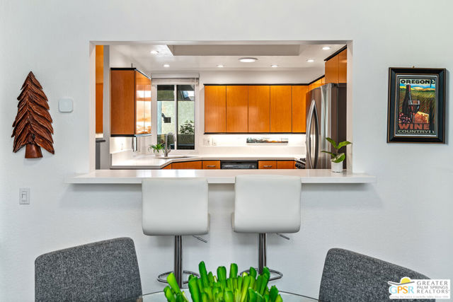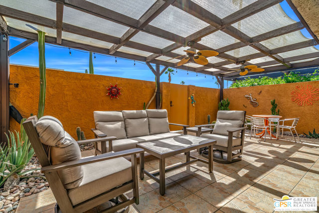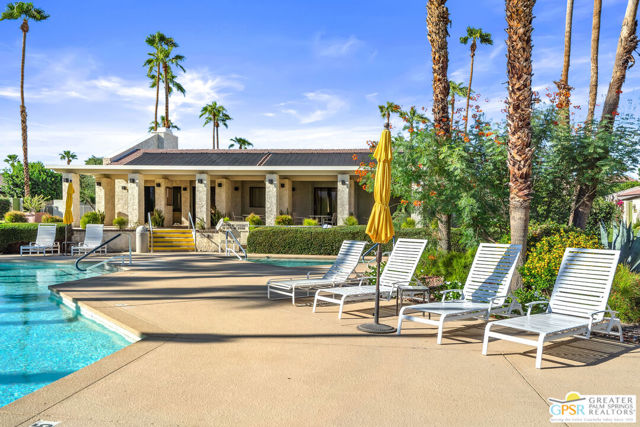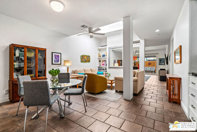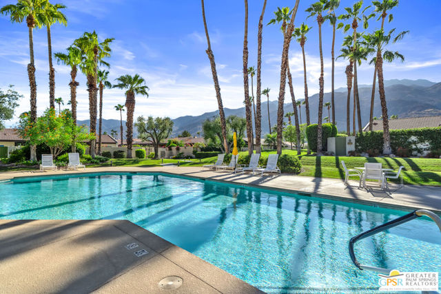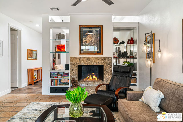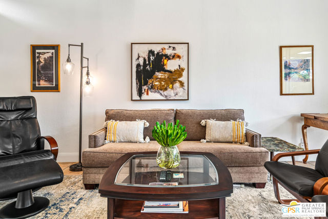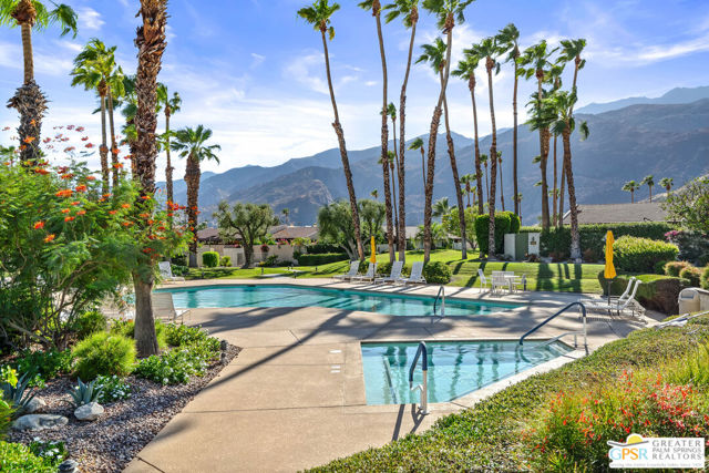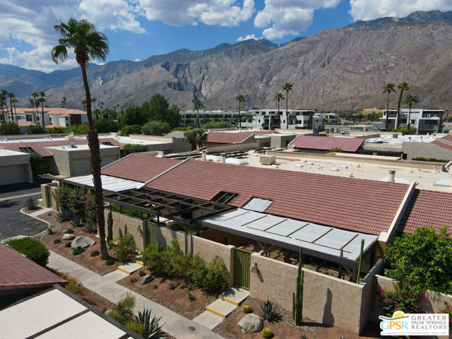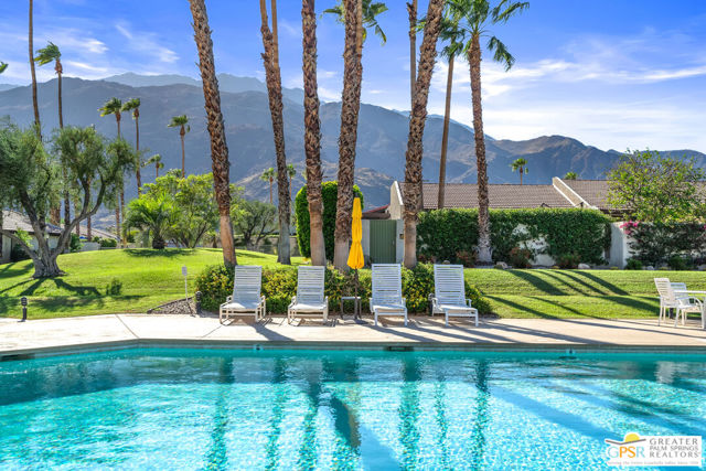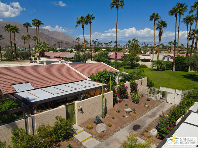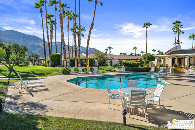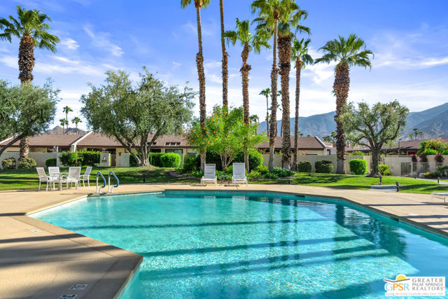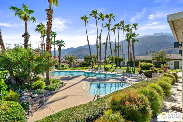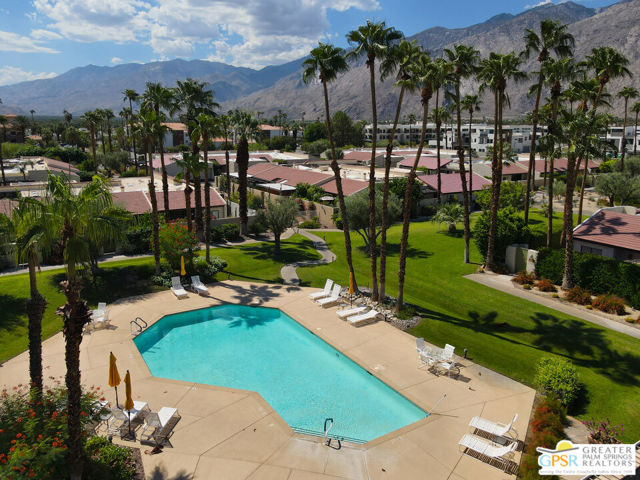 Discover the essence of desert living @ Palm Regency, one of Palm Springs' most beloved resort-style communities. This spacious 2 Bed 2 Bath single-level condo located in a quiet area of the community offers 1,595 sq. ft. thoughtfully designed for both comfort and privacy. Vaulted ceilings soar over dual living rooms separated by a cozy fireplace, creating an inviting flow of space perfect for entertaining friends or simply relaxing at home. A large private patio expand your indoor outdoor living, ideal for soaking in the sunshine, dining al fresco, or enjoying quiet evenings under the desert sky. The primary suite feels like a retreat with dual vanities and wonderful separation from the guest bedroom, while the updates throughout include dual-pane windows and doors, smart thermostat, newer AC and water heater (2020), and roof replaced in (2019) offer peace of mind. In-unit laundry makes everyday living effortless. Palm Regency itself is a lush oasis, known for its generous greenbelts and abundant amenities, including 2 sparkling pools, 2 spas, tennis and pickleball courts, and a clubhouse. The HOA covers exterior building and landscape maintenance, water, and trash, making ownership simple and carefree. Best of all, this prime location is just minutes from downtown Palm Springs, offering restaurants, theaters, museums, coffee shops, galleries, and shopping. Call for you private tour today!
