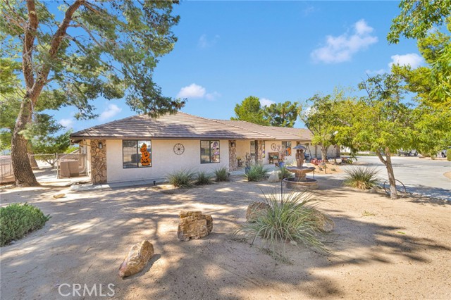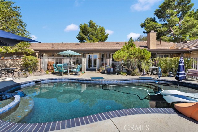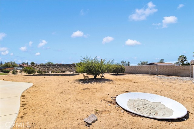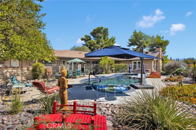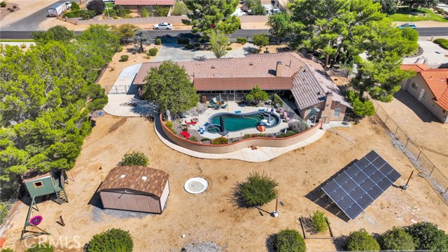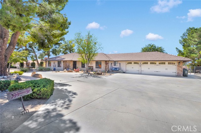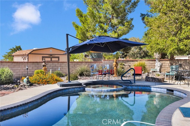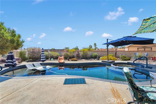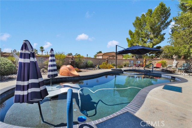 Beautifully upgraded 3 bedroom 3 and a quarter bath pool home with 3 car garage, located in the highly desirable Desert Knolls area of Apple Valley upgraded throughout. Nice open floorplan with dining room, living room, and family room with one of two cozy fireplaces. Master suite with a second cozy fireplace and a mini split AC unit has an ADA compliant walk-in shower, French doors going out to patio, or this room can be used as an office, a den, or any way you like. Lot's of storage and 3 walk in closets. This home also has a newer AC unit only 5 years old. All bathrooms have been remodeled. The kitchen has been completely remodeled with granite countertops, all high-quality stainless-steel appliances and self close drawers. Entire home has newer hard surface tile plank flooring throughout. Nice storage in separate laundry room. Large three-quarter acre lot is fully fenced with a large circular drive with automatic gate. Home also has solar which will be paid off through escrow. Back yard is a private oasis with a full-length patio, beautiful in ground pool & spa recently refinished with walk in bay area. Pool equipment also includes a heater for those cool winter nights. The kids also have a nice newly rebuilt tree house with a rock-climbing wall. This property is truly a rare find that exudes the feel of a real retreat.