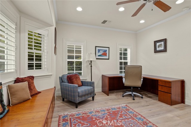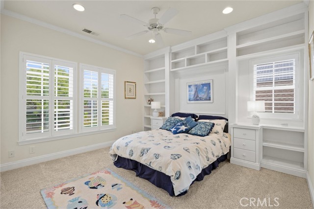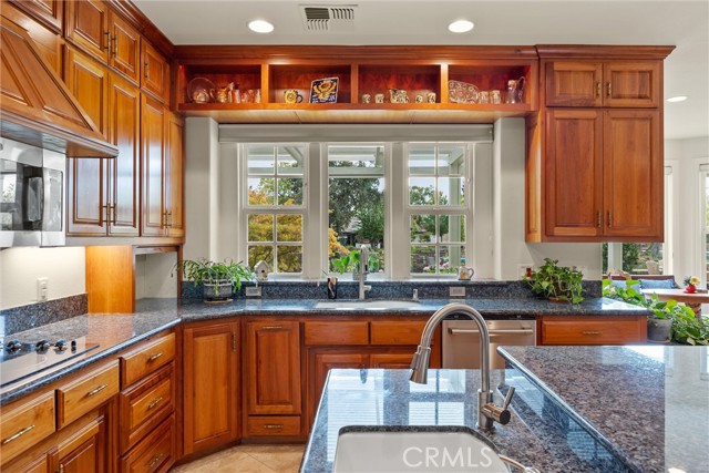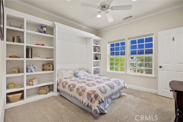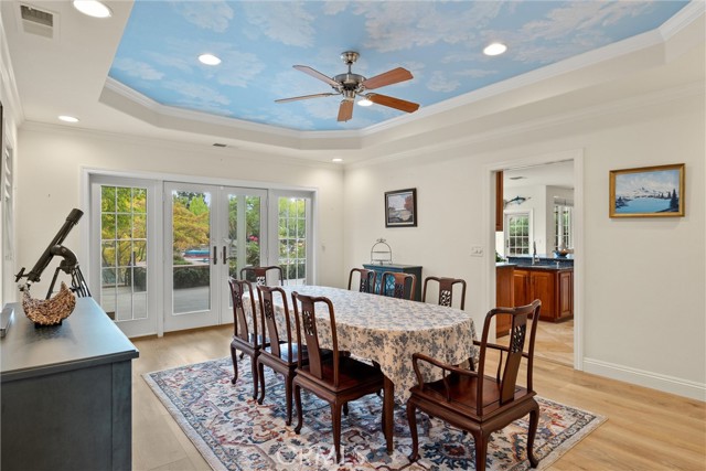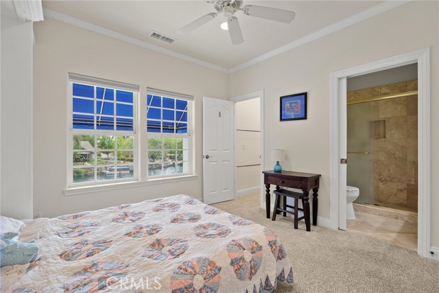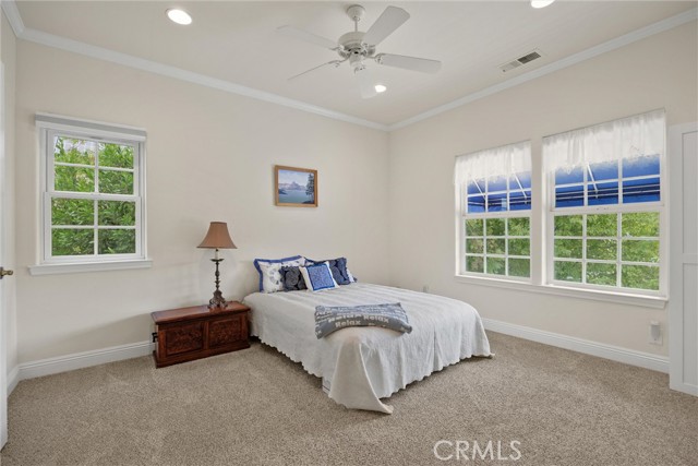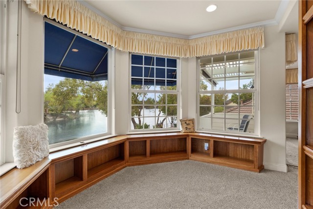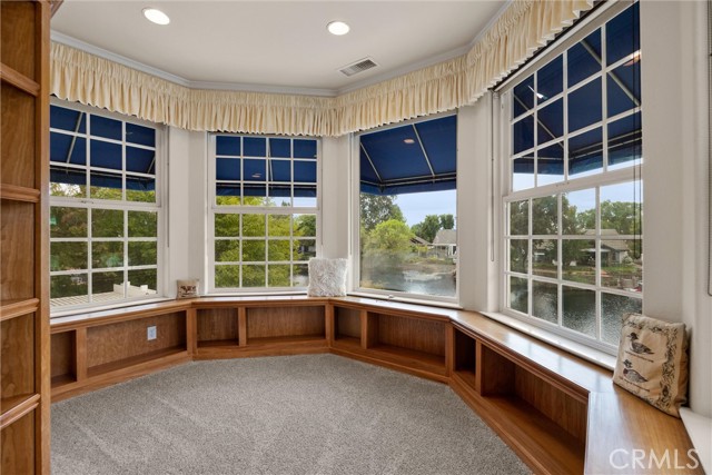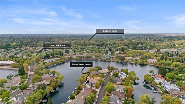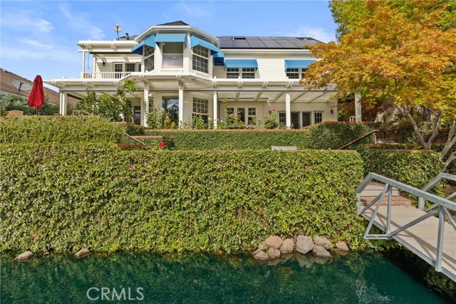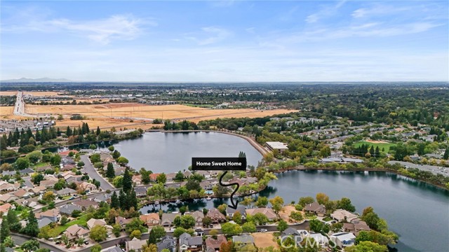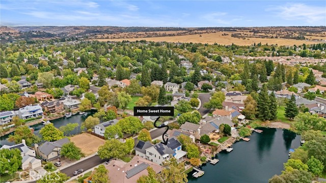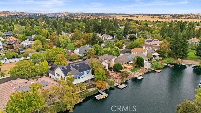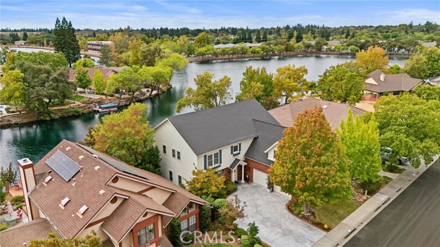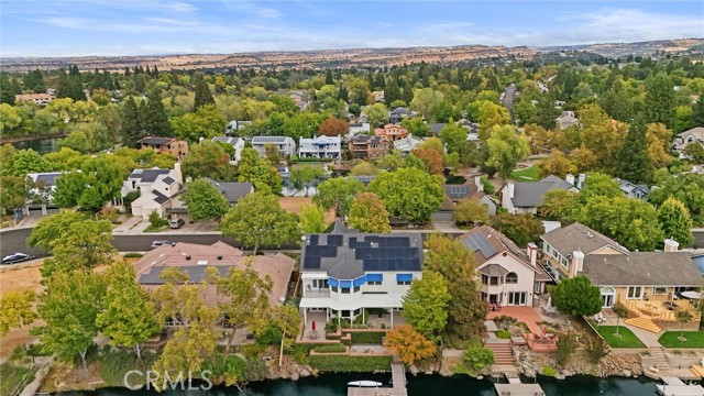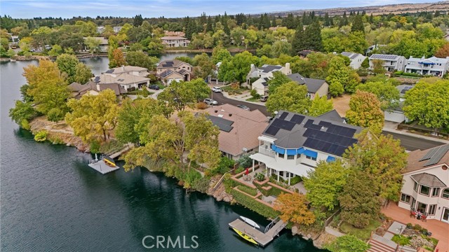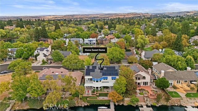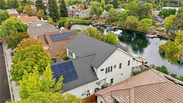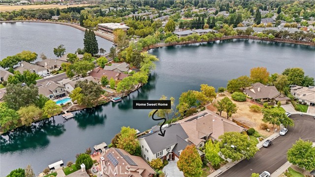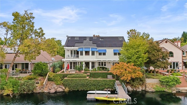 Welcome to 8 Dana Point, an incredible lakefront 4 bedroom 3.5 bathroom, 2 story home that spans over 3600 SF in the well sought after neighborhood of California Park. Enter into the home and you are met with travertine floor tile, custom stained transom glass above the front door, and a well fitted coat and storage closet. Adjacent to the entry is an office with a bay window complete with storage underneath. Enter into the kitchen with a spacious layout featuring granite countertops, cherry wood cabinets, updated GE and Cafe appliances including 2 convection ovens, 2 microwaves one of them being Advantium, and a Dutch door refrigerator with both chilled and hot water, tons of storage and counter space and a window outlooking the lake. The formal dining room is big enough for those family gatherings and features a tray ceiling painted with blue sky and clouds. Turn the lights off and watch the painting come to life with glow in the dark star constellations applied by a certified technician. Enjoy an open concept flow from the kitchen to your breakfast nook with panoramic windows outlooking the lake and a living room fitted with two large sections of built in cherry wood cabinets and shelving. The garage has space for 3 cars or 2 cars and a workshop. Complete with built in storage cabinets, two 8'x8' suspended storage platforms, and a washboard sink. Step out to the back patio and enjoy a large multi level deck that spans the width of the house over looking the lake with built in brick planter beds and your very own private dock to get onto the lake. 2 kayaks, paddles, and life jackets included. There are also motorized shades that drop down the width of the back patio providing shade to the back of the house. Upstairs, two bedrooms have a jack and jill bath with dual vanity sinks. the primary and other bedroom have their own en suite bath. All rooms either have roller shades or plantation shutters. The primary bedroom features the same tray ceiling as the dining room but with different star constellations, built in shelving within a separate sitting room, a balcony looking over the lake, 3 closets two of them being walk in, huge tiled shower and jetted tub, and a large "bonus room" with tons of storage. Included with the home is OWNED solar with 2 batteries (NEM2), and a smart "Span" electrical panel which auto switches to battery power upon power outages. This home has everything you need and more! Don't miss out on this California Park Gem!