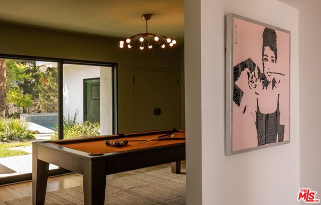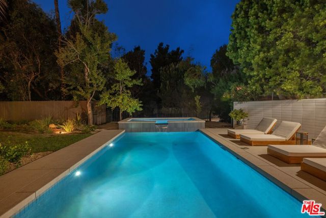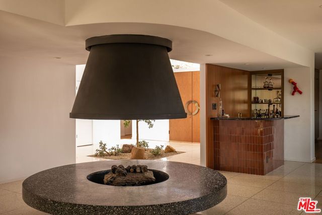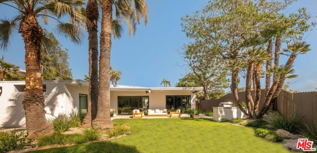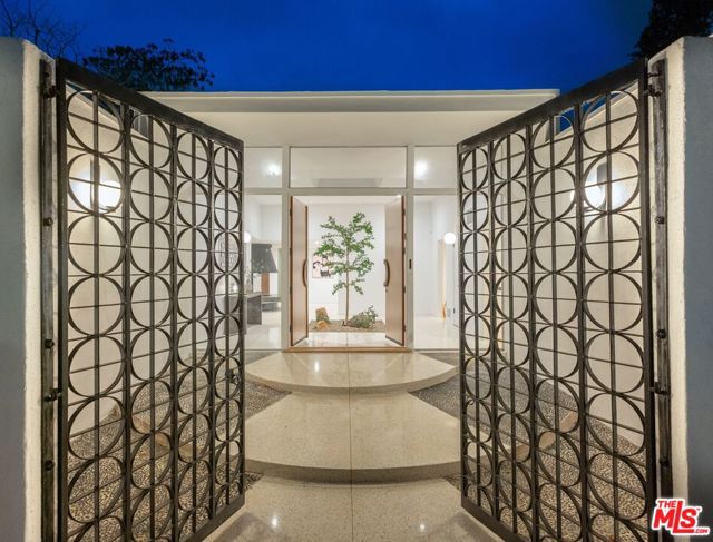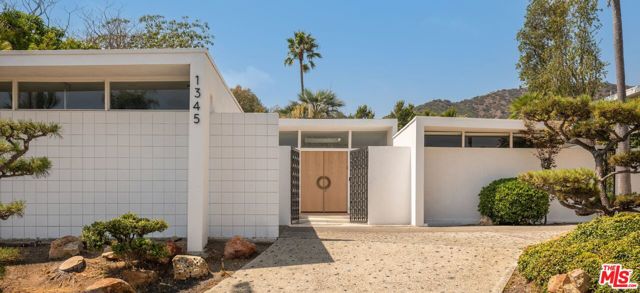 Nestled on one of Bel Air's most prestigious streets, this meticulously restored mid-century masterpiece epitomizes sophisticated California living. Set on an expansive three-quarter-acre west-facing lot, the single-story residence seamlessly marries breathtaking canyon views with an effortless indoor-outdoor lifestyle. The home has been thoughtfully reimagined for contemporary living while preserving its authentic mid-century soul. Original brass-bordered terrazzo floors and rich herringbone hardwood create a foundation of timeless elegance, while expansive walls of glass bathe the interiors in natural light and frame serene canyon vistas. A dramatic skylight adds another layer of illumination, and the iconic round black terrazzo fireplace serves as a striking focal point that anchors the living space. Spanning approximately 3,100 square feet, the residence offers four bedrooms and three-and-a-half bathrooms, complemented by thoughtful entertaining spaces. The spacious primary suite features a walk-in closet and a luxurious bathroom with a steam shower, creating a true spa-like retreat. The dining area includes a sleek wet bar perfect for hosting, while the family room showcases custom built-in cabinetry that seamlessly blends form and function. A dedicated game room and spacious mudroom/laundry complete the interior layout. The outdoor spaces are equally impressive, featuring a resort-style pool and spa, professional BBQ area, and expansive flat grassy yard - all designed for both intimate gatherings and grand-scale entertaining. A two-car garage with direct access and a circular motor court with ample parking. This is a rare, turnkey offering in prime Bel Air - an architectural gem where classic mid-century design meets modern luxury in a truly exceptional canyon setting.