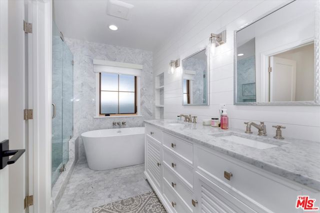 Welcome to 830 N Reese Place, a 4 bedroom, 3 bathroom home and an exceptional Burbank residence that epitomizes elegance, sophistication, and it is in absolute A+ condition! Bring your clothes, toothbrush and furniture and move right in! It's a Modern Farmhouse masterpiece, fully remodeled in 2021/2022, featuring exquisite designer finishes and cutting edge smart home technology. Located in the heart of Burbank which is renowned for its premier schools, independent city services, and proximity to world-class studios. This home offers the perfect blend of luxury and convenience. As you enter the home you're met with an open-concept living space featuring wide-plank European oak floors, Andersen windows throughout, custom wall treatments, recessed lighting, and a decorative fireplace with custom built-ins. The chef's kitchen has shaker cabinetry, quartz countertops, farmhouse sink, Sub-Zero refrigerator, Wolf 6-burner range, and premium stainless steel appliances. The primary suite is a private retreat with French doors, a shiplap ceiling, custom wardrobe, and a spa-inspired bath with dual vanities, deep soaking tub, quartz countertops, and Brizo fixtures. Additional highlights include copper plumbing, upgraded roof, HVAC, and 200 amp electrical panel with surge protection. Smart home systems elevate daily living: Nest thermostat, video doorbell, six exterior cameras, whole-home audio, remote-controlled Hunter ceiling fans as well as remote controlled window treatments, MyQ-operated solar-powered privacy gate, EcoWater softener with reverse osmosis, and phone-controlled irrigation. Outdoor amenities include landscape lighting, a SunSetter retractable umbrella, two EV charging outlets, and a finished large two-car garage/flex space with 12-foot tri-panel glass doors, built-in speakers, recessed lighting, and insulated garage door. This home offers the best of Burbank living with unrivaled access to world renowned studios including Disney, Warner Bros and Netflix. Enjoy the charm of tree lined streets, top rated schools, and the unique convenience of Burbank's own city services, while being moments from the Chandler Bike Path, trendy shops, acclaimed restaurants and vibrant local cafes. This is more than a house, it is the ultimate Burbank lifestyle and ready to be called YOUR home!