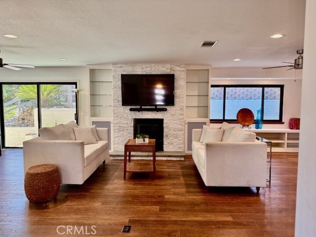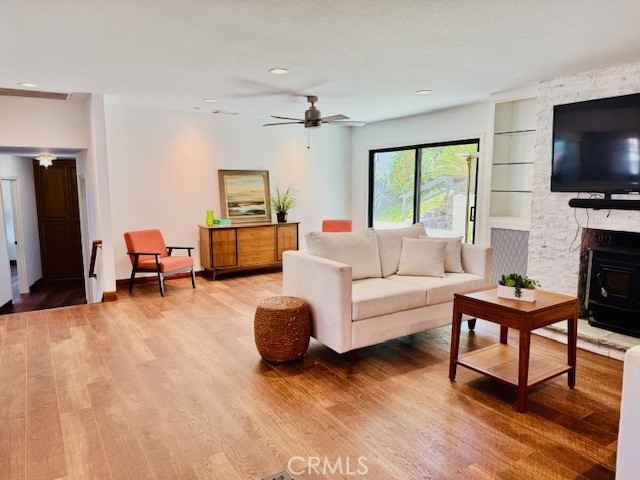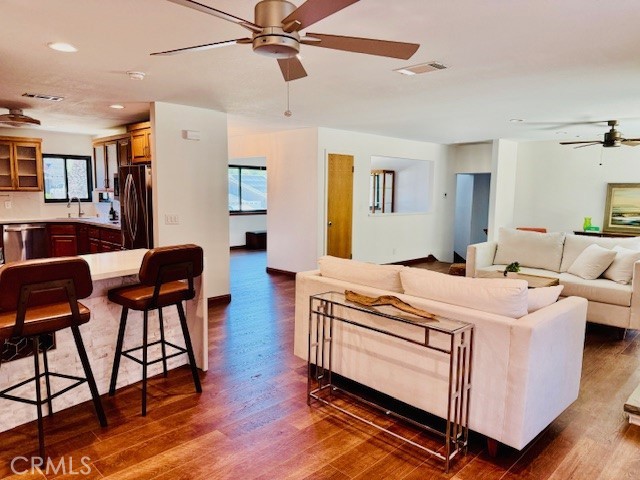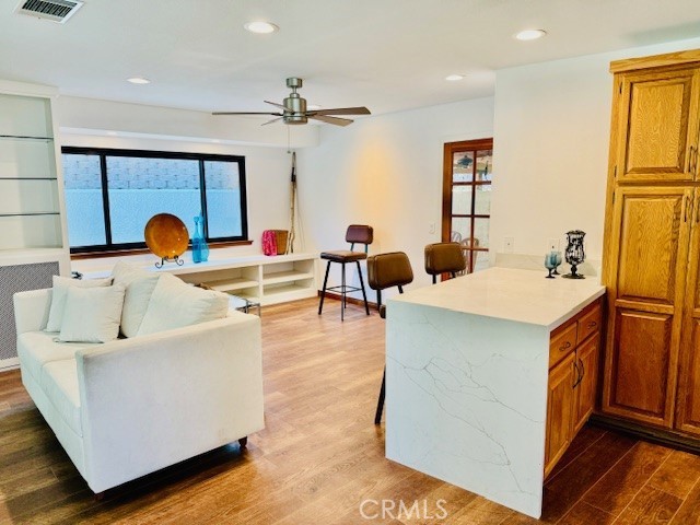 Very large 3 bedroom/2 bath home with open concept living and all the bells and whistles! New windows throughout, new laminate wood flooring, whole house fan, new quartz countertops in kitchen and bathrooms, updated stone showers, upstairs laundry...all the things people have on their "must have" lists including new kitchen stainless steel appliances and walk-in closets in each bedroom. Owner is an interior designer and has turned this ordinary house in to a modern model home! As you enter the home, the dining room is on the left and is well equipped to host your next formal dinner party. Your company will flow right into the living room complete with stacked stone fireplace to cozy up to. If you like reading spaces, the very large living room invites you to sit and enjoy the natural light from the slider which leads to the backyard and nature. Family game night can be had in the dining area which also has beautiful tall windows and is right off the kitchen. The kitchen has new appliances and a breakfast bar with a lower wine rack area to make both spaces multi-functional. There are two big bedrooms off the living room and both have mirrored walk-in closets. You'll the private primary suite upstairs which has its own balcony, dual sinks, stackable washer and dryer, and huge walk-in closet. BONUS!!! Bring the inlaws or guests because this home also boasts a new area which has an office/bedroom/hobby room with its own bathroom and a utility room that can have another stacked laundry area and a mini-kitchenette. Outside is a covered patio lanai complete with big screen tv for those who like outdoor dining and entertaining. The backyard is also mulit-level with two areas for entertaining, dining, and for the kids to build their out door forts and tents. This is a rare find so put this on your MUST SEE list!