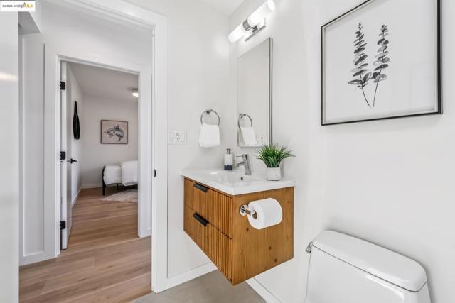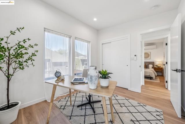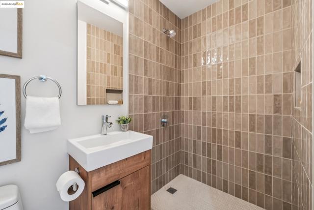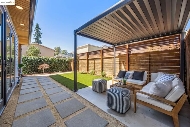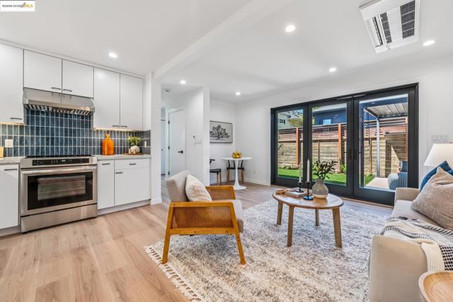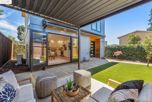 Rare, sustainable and NEW in North Oakland’s coveted Bushrod Park: a modern / minimalist-inspired contemporary by New Avenue Homes. Tucked behind a classic 1910 home, this all-electric, energy-efficient new build offers indoor-outdoor living close to BART, Berkeley Bowl, Rockridge, and Temescal—voted East Bay's best neighborhood for going out. A light-filled plan centers the kitchen, living and dining rooms with a dramatic wall of glass opening to a private landscaped yard for seamless entertaining. Wide-plank floors, skylights, black-framed windows, designer lighting, artisan tile and clean lines nod to modern sensibility and craftsmanship. The chef’s kitchen boasts SS appliances, induction range, quartz counters, and blue tile backsplash. Built to modern energy and seismic standards, and designed to be net-zero-ready with HRV filtration, EV-ready parking, and more. Peaceful, private rear setting with Walk Score 90, Bike Score 100, and walking distance to BART. Opportunity to purchase the front home and own both great homes. Flexible Tenancy in Common (TIC) ownership structure may qualify for subdivision opportunities under SB9 and/or SB 684 to unlock future value potential (Buyer to verify) or purchase both homes together. Must see.