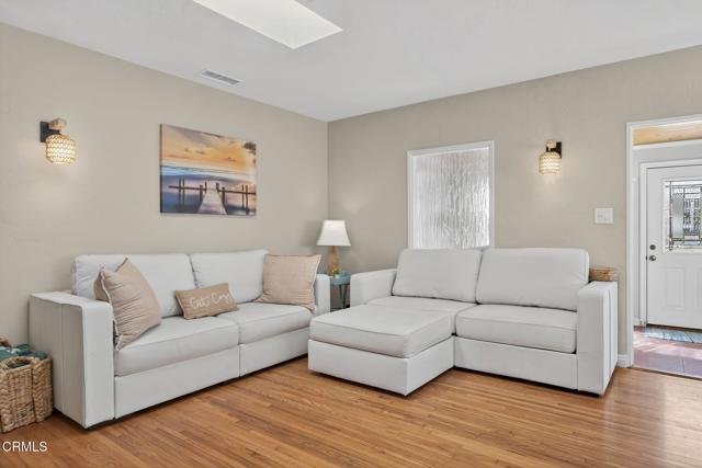 Coastal Charm Meets Modern Comfort in Midtown Ventura.Just one mile from the beach, this charming spacious three-bedroom, two-bathroom home is located in Ventura's highly desirable mid-town neighborhood, close to shops, restaurants, and the 101 freeway. Offering 1,368 square feet of living space, the home blends vintage character with thoughtful modern updates.The inviting open living room features a cozy gas and wood-burning fireplace, complemented by real wood floors and two skylights for additional sunlight. The open concept continues with a dining room large enough for you and your guests. A vintage yet modern feel carries through the home, enhanced by central HVAC, a tankless water heater, newer attic insulation, updated ductwork, and dual paned windows with the added convenience of a separate indoor laundry room.Outdoors, the property is designed for both easy maintenance and entertaining. Artificial turf and manicured landscaping frame the front and back lawns, while a spacious deck offers the perfect space to gather with friends. A designated sand pit with an outdoor fireplace creates an inviting setting to enjoy cool coastal evenings. The finished shed in the backyard provides added flexibility, ideal as a workout space, office, or creative studio.Recently fumigated and well maintained, this home offers the best of Ventura living--classic charm, modern comfort, and a location that keeps you close to everything the beachside lifestyle has to offer.