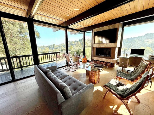 A Rare Mid-Century Modern Gem with Iconic Design and Panoramic Views Mid-century modern homes of this caliber rarely come to market. Designed by architect Dale Bergerson with legendary A. Quincy Jones. built in 1965 for the Zimmerman family, this architectural treasure embodies the clean lines, open spaces, and indoor-outdoor flow that define the era. Perched on a knoll above the 15th green of the Woodland Hills Country Club, the home captures sweeping mountain and golf course views through walls of glass and clerestory windows. Natural light floods the interior, highlighting Venetian plaster walls and distinctive tile and white oak flooring. Post and Beam construction creates a timeless, airy ambiance. The living space is centered around a dramatic gas fireplace and seamlessly connects to both front and rear outdoor areas. A Teak wood entertainer’s deck spans the back of the home, featuring a Viking outdoor kitchen, built-in spa, and tranquil custom waterfall, all framed by a towering wall of timber bamboo for added privacy. The chef’s kitchen is fully outfitted with premium appliances, including a Wolf range, Sub-Zero glass refrigerator, Miele built-in coffee station, and a temperature-controlled wine cooler. Three spacious bedrooms and two bathrooms are intelligently placed along a wide, open floor plan. The primary suite opens directly to the front deck, offering morning sunlight and evening serenity. The landscaping is a masterclass in balance and simplicity, inspired by traditional Japanese garden design. Additionally, a newly remodeled bonus room below the main residence offers flexible use—currently serving as a home theatre and art studio. Thoughtfully designed and impeccably maintained, this home is a rare opportunity to own a piece of architectural history with all the luxuries of modern living.