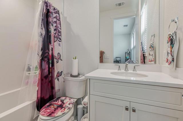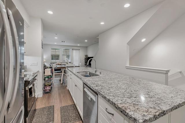 Experience modern luxury in this stylish tri-level home built in 2023, featuring four spacious bedrooms, four full baths, and numerous high-end upgrades. Designed for elegance and functionality, the open-concept main floor offers a light-filled living space where the gourmet kitchen flows seamlessly into the dining and living areas. A large center island with granite countertops, white shaker cabinetry, and premium stainless steel appliances create the perfect blend of style and convenience, ideal for both everyday living and entertaining. The first level includes a private bedroom and full bath, perfect for guests or multi-generational living. On the main level, a generous secondary bedroom and full bath integrate smoothly into the open floor plan. The third level showcases a private primary suite, designed as a retreat, along with an additional bedroom complete with its own en-suite bath. Outdoor living is inviting, with a large front porch and balcony deck providing welcoming spaces to enjoy the sunshine. Upgrades include paid solar panels, luxury vinyl plank flooring on the main level, EV charging outlets in the oversized two-car garage, and a whole-house water filtration system. The community includes a playground, pool and a mini putting green for immediate recreation.