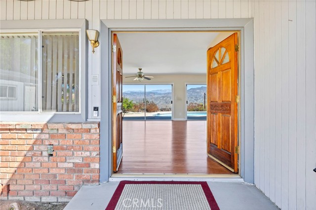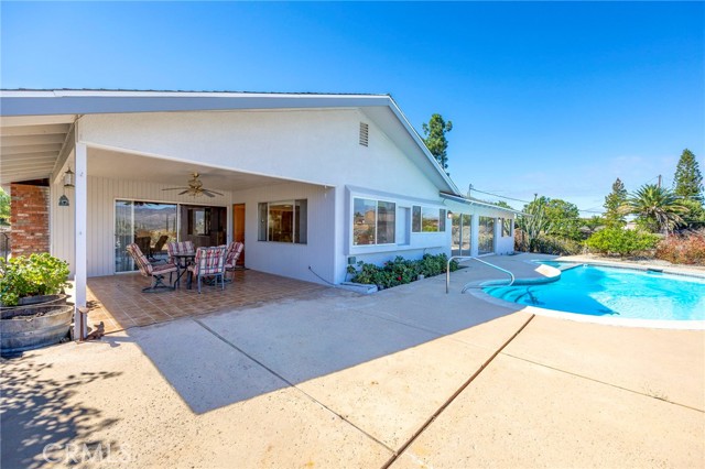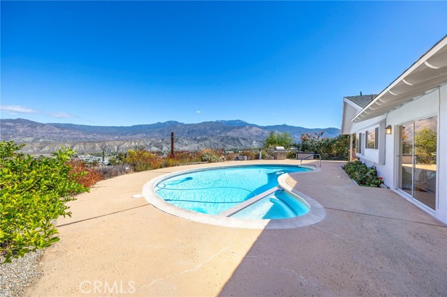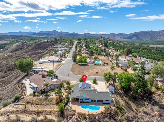 Welcome to 26320 Rim Road, a single-story retreat in the scenic community of Sprague Heights that offers panoramic views and ultimate privacy. Sprague Heights offers the peace and views of country living while being close to town for all your shopping needs. Resting on a generous .67-acre lot, this 3 bedroom, 2 bathroom home blends comfort, function, and lifestyle in one inviting package. As you step inside, you’ll be greeted by a spacious living room with two large sliding glass doors that frame sweeping vistas. The kitchen features oversized windows that showcase the hillsides and valleys, filling the space with natural light and endless scenery. The backyard is truly the highlight of this property. An in-ground pool takes center stage, perfectly positioned to overlook the stunning views and offering a private resort-like atmosphere. A covered patio provides shade for gatherings and relaxation, while the surrounding landscape includes mature fruit trees—orange, lemon, Meyer lemon, and lime. Additional features include an extra-large garage with a built-in workbench, a large storage shed, and the benefit of solar efficiency—sellers typically receive an annual credit from Edison. Located near Soboba Casino, Diamond Valley Lake for boating and fishing, and numerous hiking trails, this property is close to recreation while maintaining a peaceful setting. Approximate drive times: 86 miles to Los Angeles, 74 miles to San Diego, 60 miles to Oceanside, and 42 miles to Palm Springs.