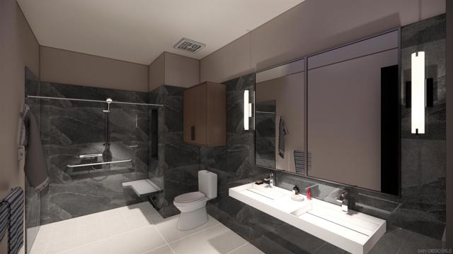 This brand-new, fully ADA-accessible, single-level condo is truly one of a kind! Located in Downtown Oceanside's newest development, Freeman Street Homes, this boutique community offers the perfect blend of modern living and vibrant beach energy. Nearing completion in 2025, it features five residential units, including this stylish single-level condo, and two commercial spaces, ideal for a live-work lifestyle. This particular unit is a ground-floor, single-level residence that combines thoughtful design with high-end finishes. With soaring 10-foot ceilings, a striking entry door, and rich mahogany cabinetry, it sets a tone of modern sophistication. Large windows let in an abundance of natural light, and two private outdoor spaces allow you to enjoy Oceanside's amazing weather. This home is fully ADA-accessible, featuring wide doorways, a flush-floor shower, van-accessible parking, and no stairs, designed for ease, comfort, and independence. This home also presents an ideal opportunity as an in-law suite or guest residence when paired with one of the larger townhomes in the community, offering a flexible multi-generational living solution with privacy and separation. Situated directly beside one of the building’s optional commercial spaces, this unit is also perfect for a true live/work lifestyle, whether you need a home office, creative studio, or professional storefront! Just a five-minute walk from the beach and iconic Oceanside Pier, Freeman Street Homes has it all!