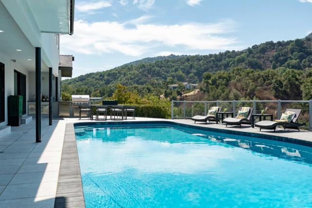 Set on 1.15 acres overlooking Rancho San Antonio Preserve, this fresh, modern home offers nearly 3,000 SF of thoughtfully remodeled interiors. Bright spaces showcase high-quality materials with sophistication at every turn. A dramatic living room with sleek fireplace connects to the dining room with wine storage, while the chef's kitchen boasts Miele, Sub-Zero, and Wolf appliances. Upstairs, three bedrooms include the primary suite with spa-like bathroom and an adjoining room ideal for an office or nursery. The backyard captures spectacular preserve views and features a patio with built-in grill and a sparkling pool, creating both an entertainer's dream and a tranquil retreat where you can enjoy a peaceful, easy feeling. Additional highlights include air conditioning, solar panels, smart features, and two EV chargers. Despite its privacy, this home is just minutes from the Rancho Shopping Center, downtown Los Altos, the Los Altos Golf & Country Club, and top schools (buyer to verify).