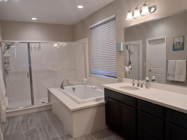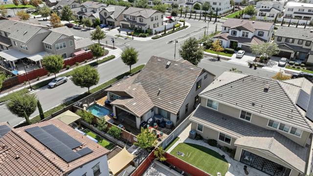 Welcome to an innovative living style in this Stunning home with 5 bedrooms and 4.5 bathrooms.The beauty begins with custom flooring throughout most of the house. The downstairs Kitchen features lots of cabinets, granite counters, a large island, gas stove, and pantry, and flows into the dining room and living room. Downstairs is a large master bedroom with a walk-in closet, dual sink vanity/storage, shower, and a large soaking tub. There are 2 additional bedrooms, with 1-1/2 baths, a laundry room with cabinets, and another dual sink vanity/storage, and linen closet. Downstairs also features a separate in-law unit with its own entrance, bedroom, full bathroom, small walk-in closet, kitchenette, and living area. Upstairs you will find an oversized bedroom, 1 full bathroom, and a large loft. The backyard features a California room with recessed lighting, fireplace. The showpiece of the backyard is the Spool (spa/pool) gas heated, has a waterfall, 6 spa jets, and in-ground colors lighting. Great for backyard enjoyment all year long!. This property has OWNED Solar Panels. $150,000.00 in upgrades. Nestled in the Summer Homes area of River Islands Community, it has: 3-Elementary Schools, 1-high School, 10+ miles of walking trails, children parks, Lakes, Boathouse Rest. & Sports Areas